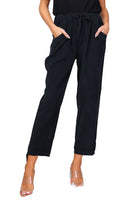 • Pantalon en velours côtelé avec taille élastiquée à nouer