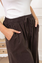 • Pantalon large en velours côtelé avec taille élastiquée à nouer