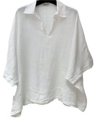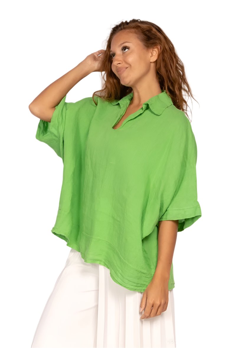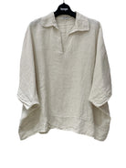 Rehaussez votre garde-robe avec notre magnifique tunique oversize en lin italien ! Sa coupe courte et son encolure ouverte lui confèrent un charme naturel. Profitez du confort des manches chauve-souris et de la matière 100 % lin. Idéale pour les tailles 40 à 46 (UK 12 à 18).