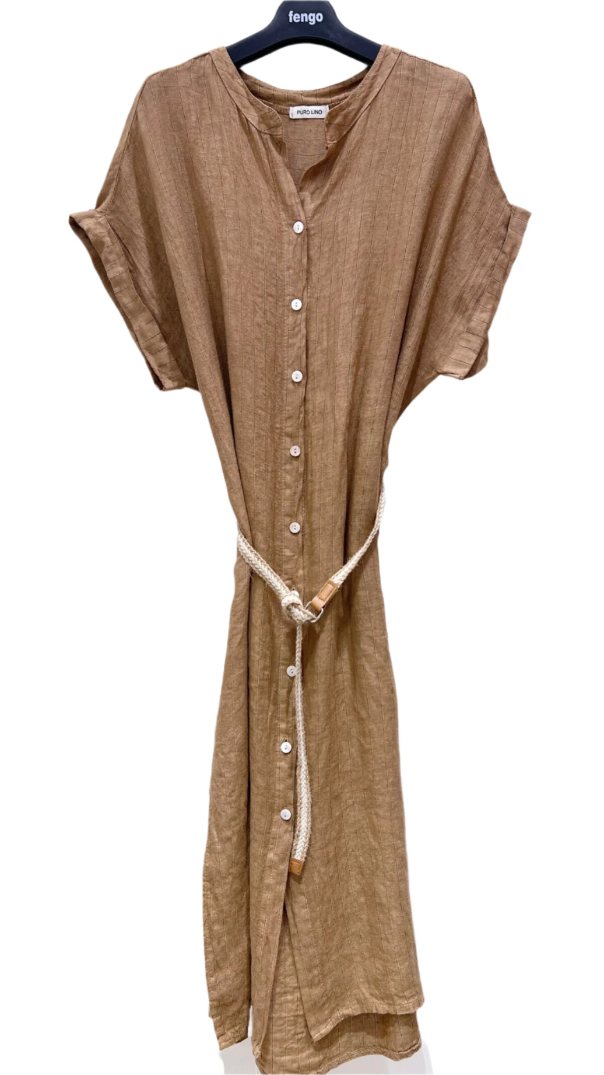 Robe boutonnée en lin rayé avec ceinture, taille unique