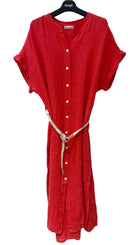 Cette robe en lin à manches courtes présente de fines rayures et un devant boutonné. Confectionnée en lin 100 % respirant, elle vous assure un confort optimal tout au long de la journée. Sa ceinture intégrée souligne votre taille, tandis que sa taille unique polyvalente convient aux tailles 38 à 42 (UK 10-14). Avec sa longueur flatteuse de 120 cm, elle est parfaite pour une tenue décontractée et élégante en toute saison.