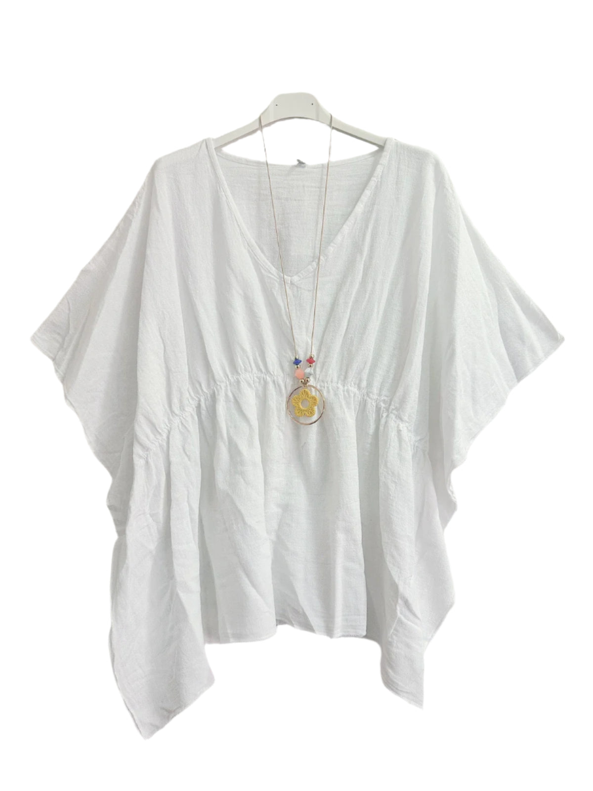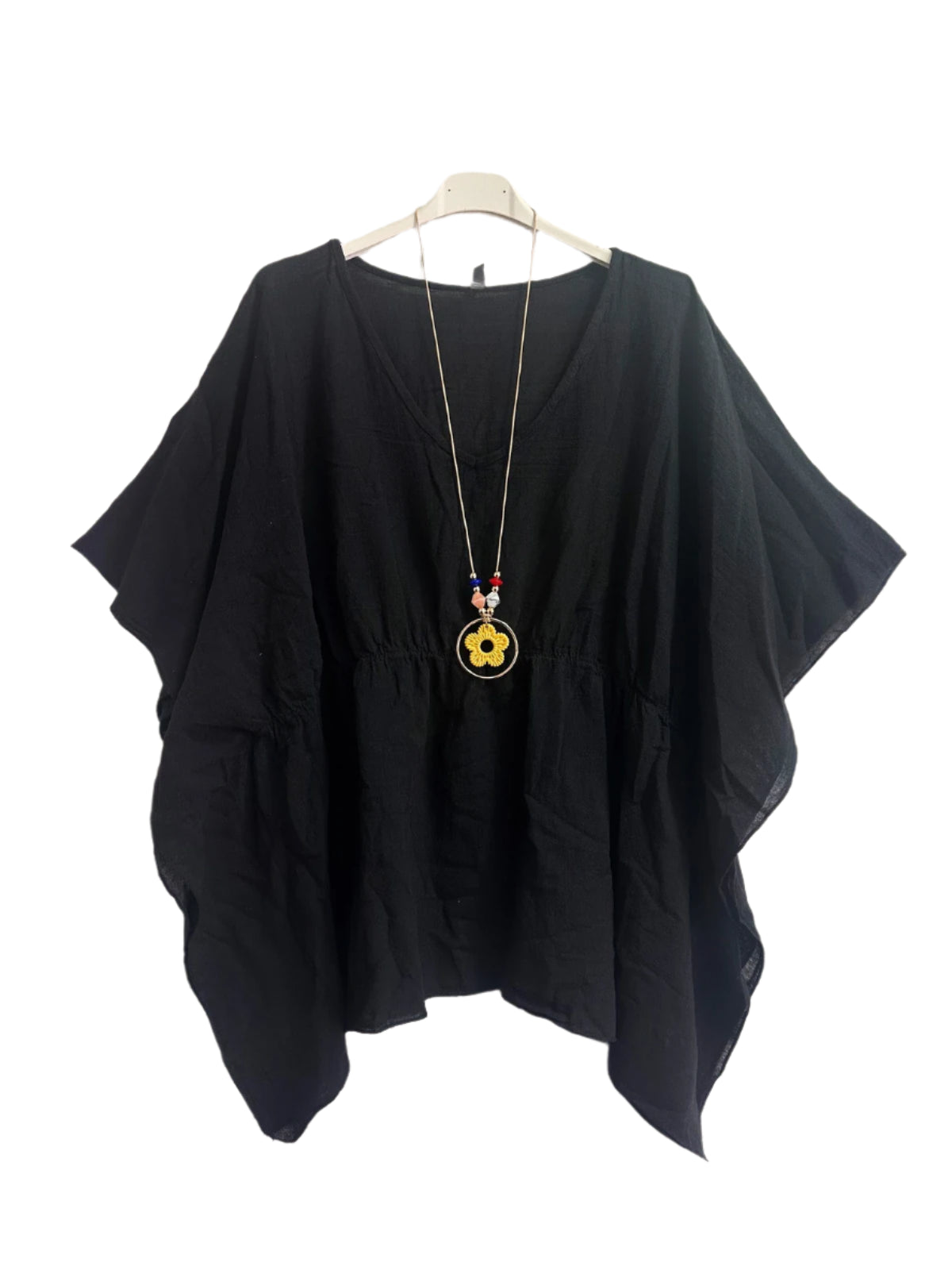 Ce haut léger en mélange de coton et de lin offre une silhouette aérienne inspirée d'une cape, avec de larges emmanchures pour un look naturellement chic. Ce mélange de matières naturelles allie la structure subtile du lin au confort doux du coton, idéal à porter au quotidien. Sa coupe généreuse s'adapte de la taille 40 à la taille 48 (UK 12-20) et son style enveloppant accompagne vos mouvements. Adoptez confort et élégance dans un haut fun et polyvalent !