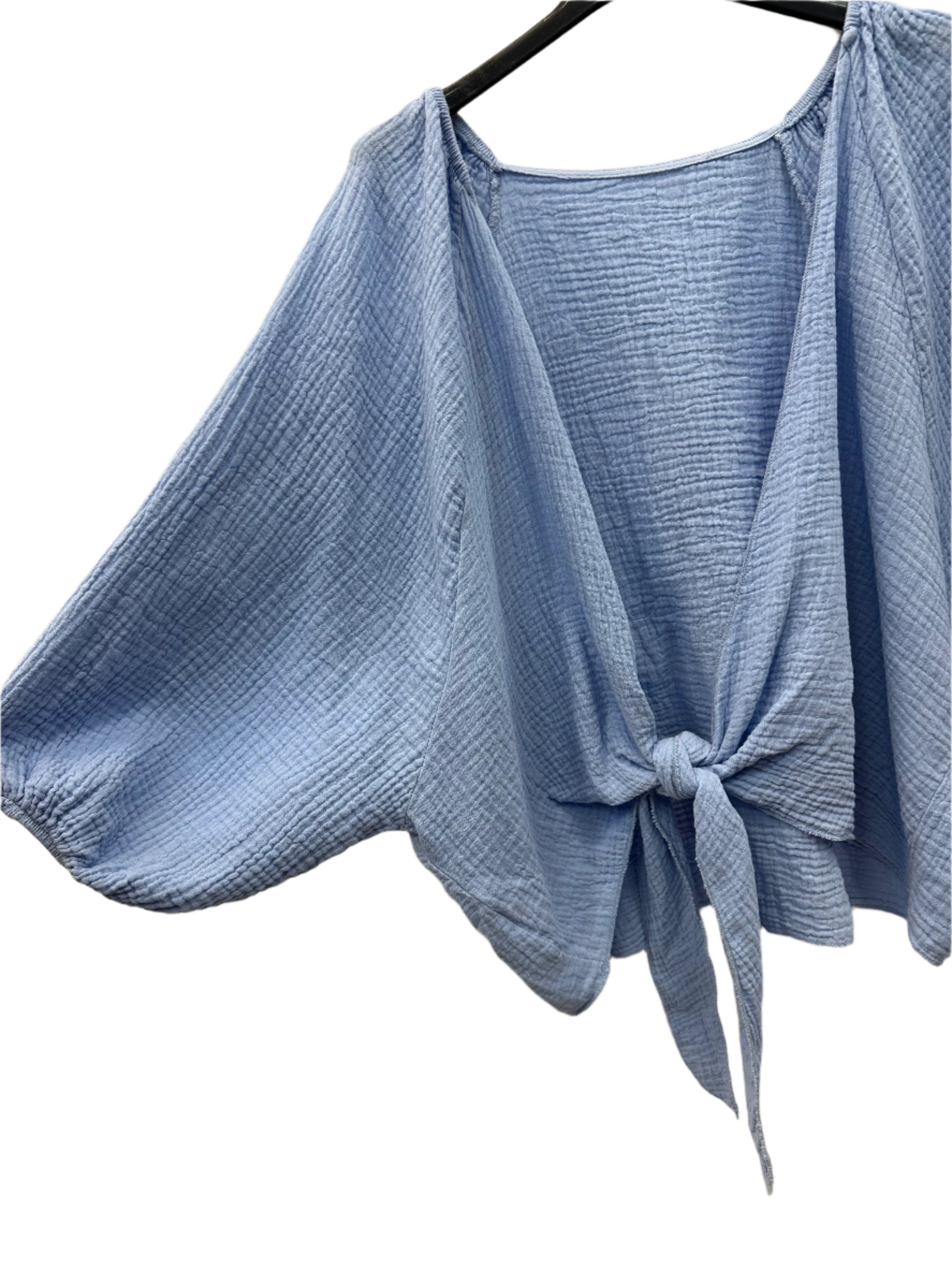 Sublimez votre garde-robe estivale avec notre boléro en gaze de coton italien ! Confectionné dans un tissu léger et respirant, ce modèle polyvalent offre style et confort en toute simplicité. Idéal pour une journée à la plage ou une soirée, il est un indispensable de votre garde-robe estivale.