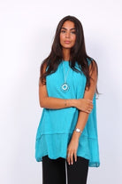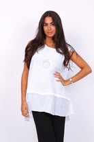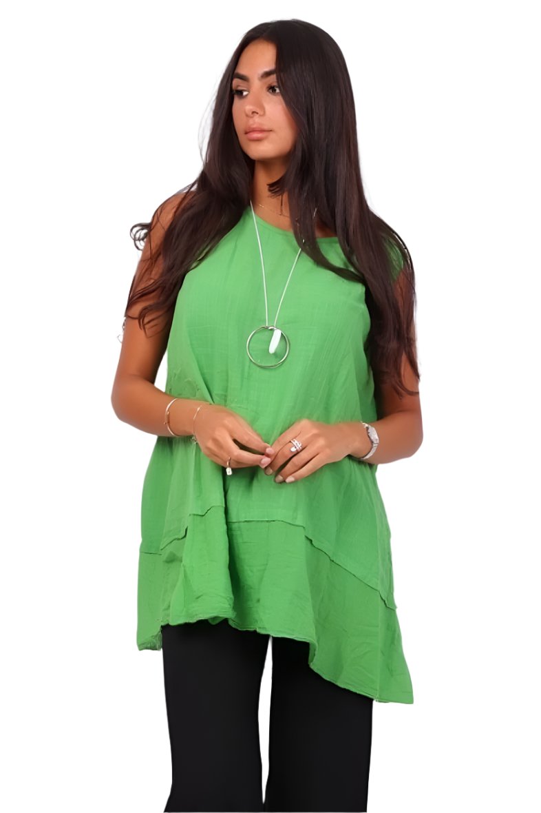 Rehaussez votre garde-robe avec notre haut italien uni sans manches. Confectionné dans un tissu léger et de haute qualité, notre haut grande taille convient jusqu'au 52 (UK 24). Son ourlet asymétrique apporte une touche unique à ce modèle classique, le rendant polyvalent en toute occasion. Sentez-vous à l'aise et en confiance dans cette pièce incontournable.