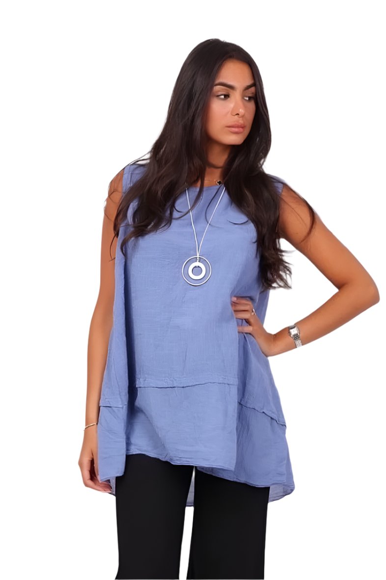 Tunique italienne grande taille sans manches à ourlet haut-bas
