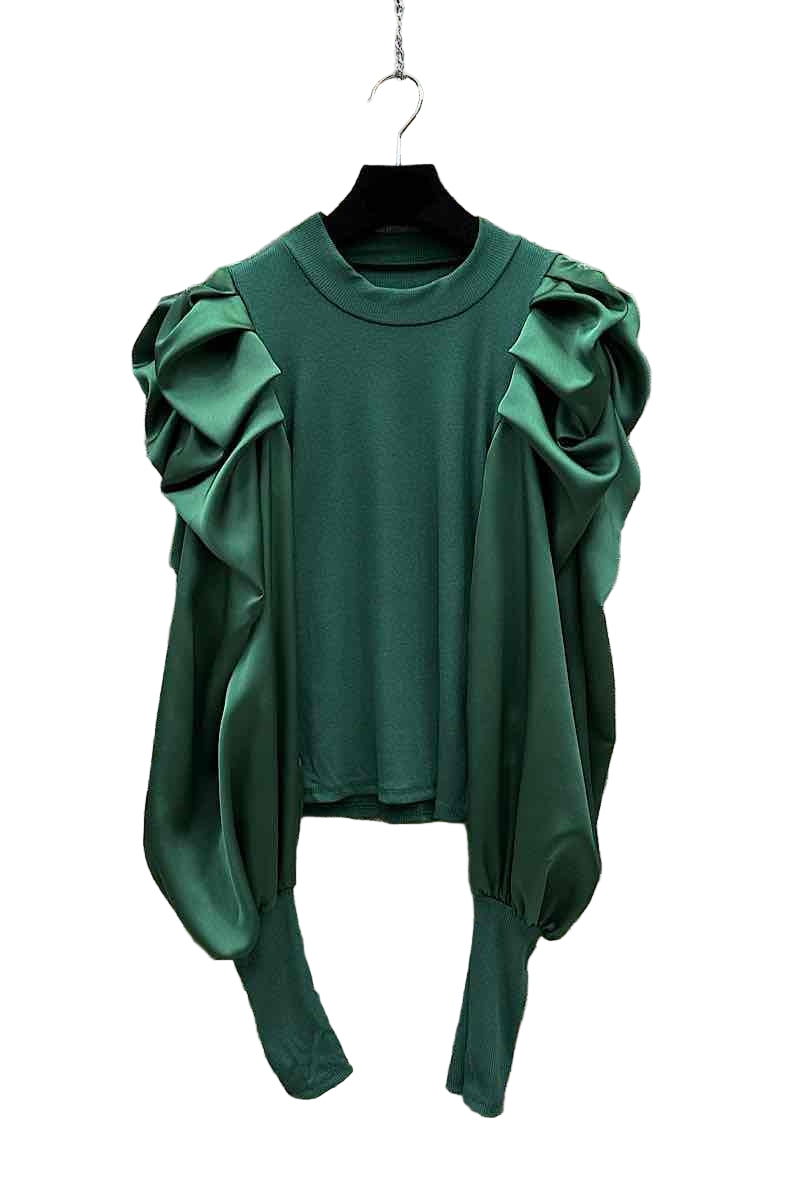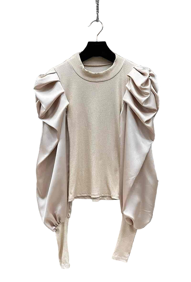 Haut côtelé italien avec manches en satin
