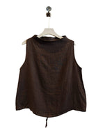 Haut court sans manches en lin italien à col montant, taille unique