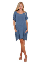 Mini-robe italienne en lin avec grandes poches avant, taille unique
