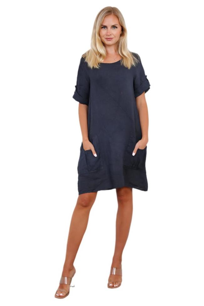 - Robe en lin italien avec poches devant