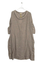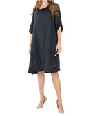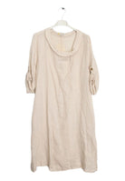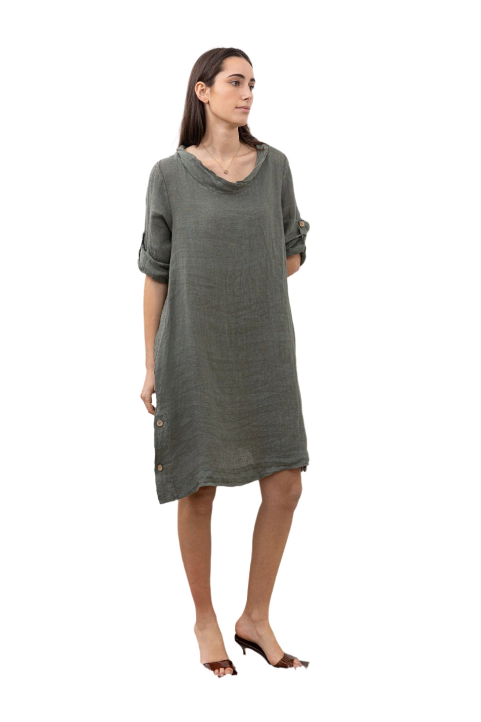 Inspirez-vous d'une sophistication naturelle avec notre robe droite mi-longue en lin à col bénitier, au chic italien. Fabriquée en Italie, cette robe taille unique présente un col bénitier rond, des boutons sur les côtés et d'élégantes manches trois-quarts boutonnées. Confectionnée en 100 % lin pour allier style et praticité, optez pour un style décontracté.