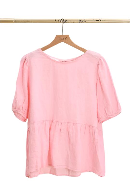 Haut en lin à manches courtes et volants, fabriqué en Italie, taille unique
