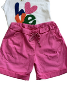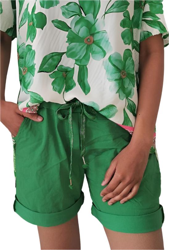 Découvrez la magie du savoir-faire italien avec ce short Magic taille unique. Confectionné dans un mélange confortable et extensible de coton et d'élasthanne, ce short est idéal pour une journée d'exploration grâce à ses deux poches latérales et son lien pratique à nouer sur le devant. Sa taille élastique assure une coupe confortable et flatteuse. Taille unique 40-46 (UK 12-18). Ajoutez ce short polyvalent et élégant à votre garde-robe dès aujourd'hui !