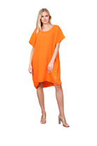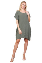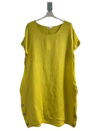 Robe en lin à col rond Lagenlook, détails boutonnés, taille unique