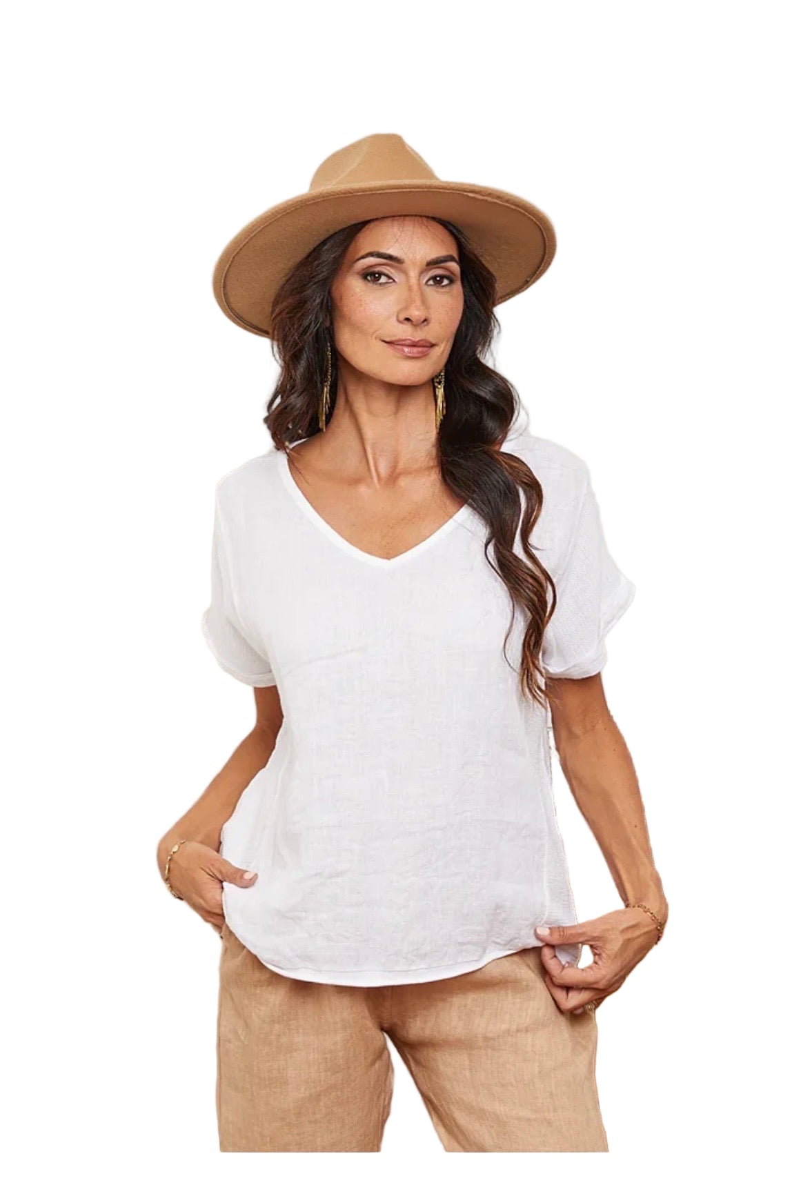 Notre haut décontracté en lin italien, taille unique, offre un confort ultime grâce à son col en V fluide et élégant. Polyvalent, ce haut convient aux tailles 40-44 (UK 12-16) et est un incontournable de toute garde-robe. Exprimez votre style unique grâce à la variété de couleurs disponibles.