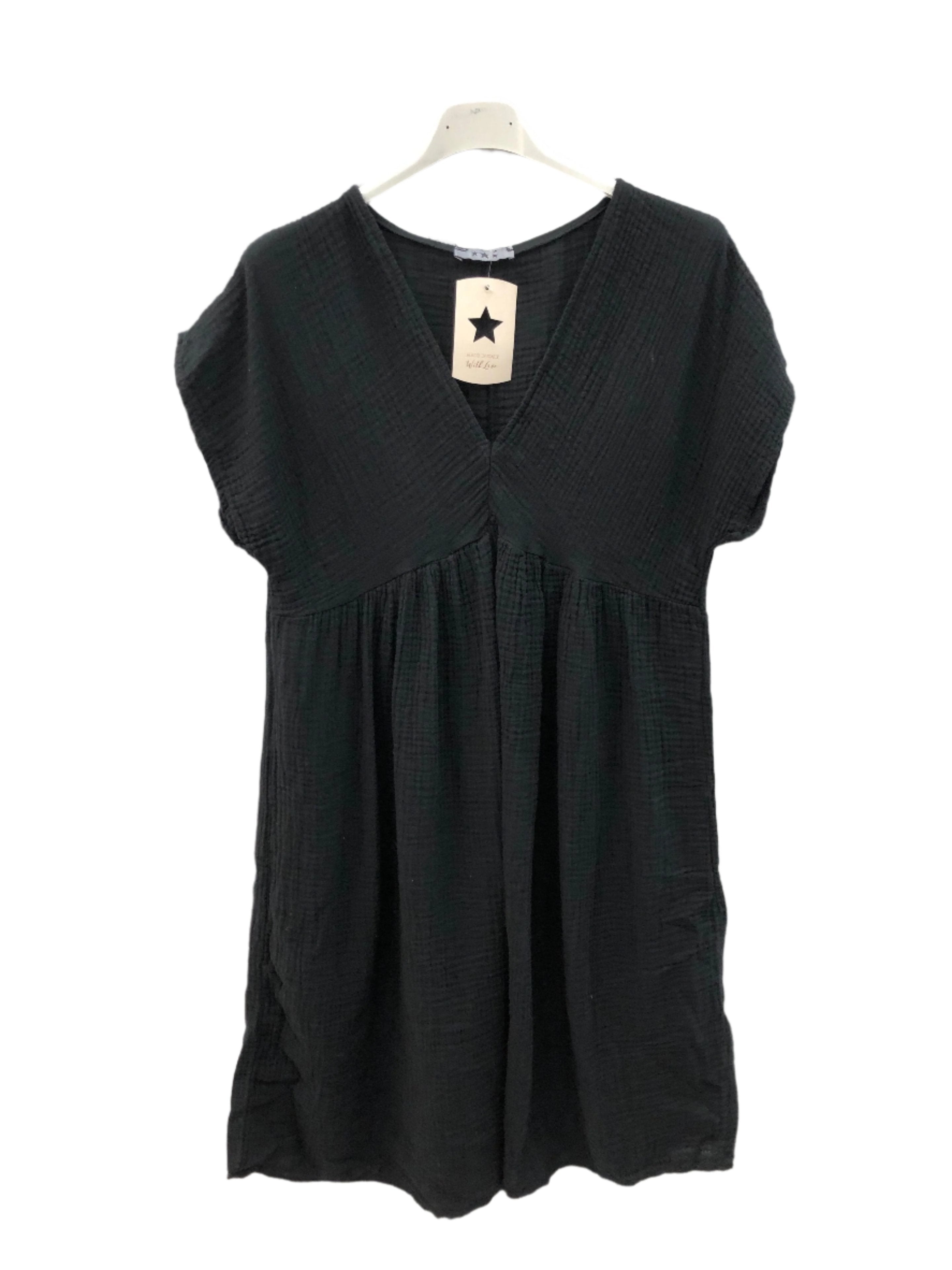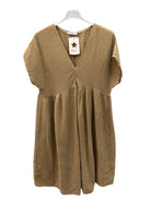 Sublimez votre garde-robe avec notre robe taille unique à manches courtes en gaze de coton ! Fabriquée en Italie en 100 % coton, cette robe allie confort et style. Son col en V et sa couture sous la poitrine créent une coupe fluide, tandis que la gamme de couleurs offre une grande polyvalence. Taille unique pour 38-42 (UK 10-14).