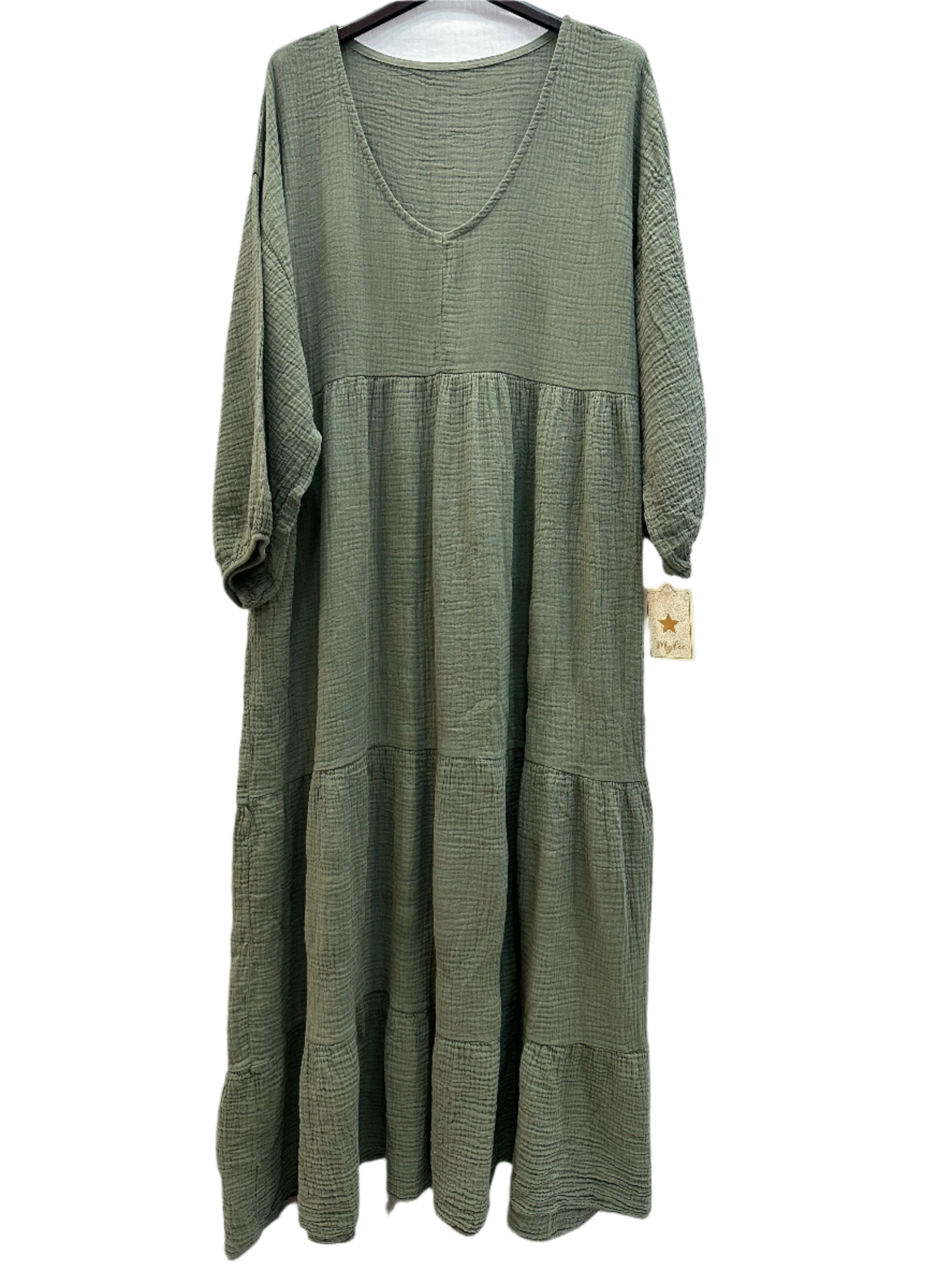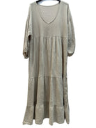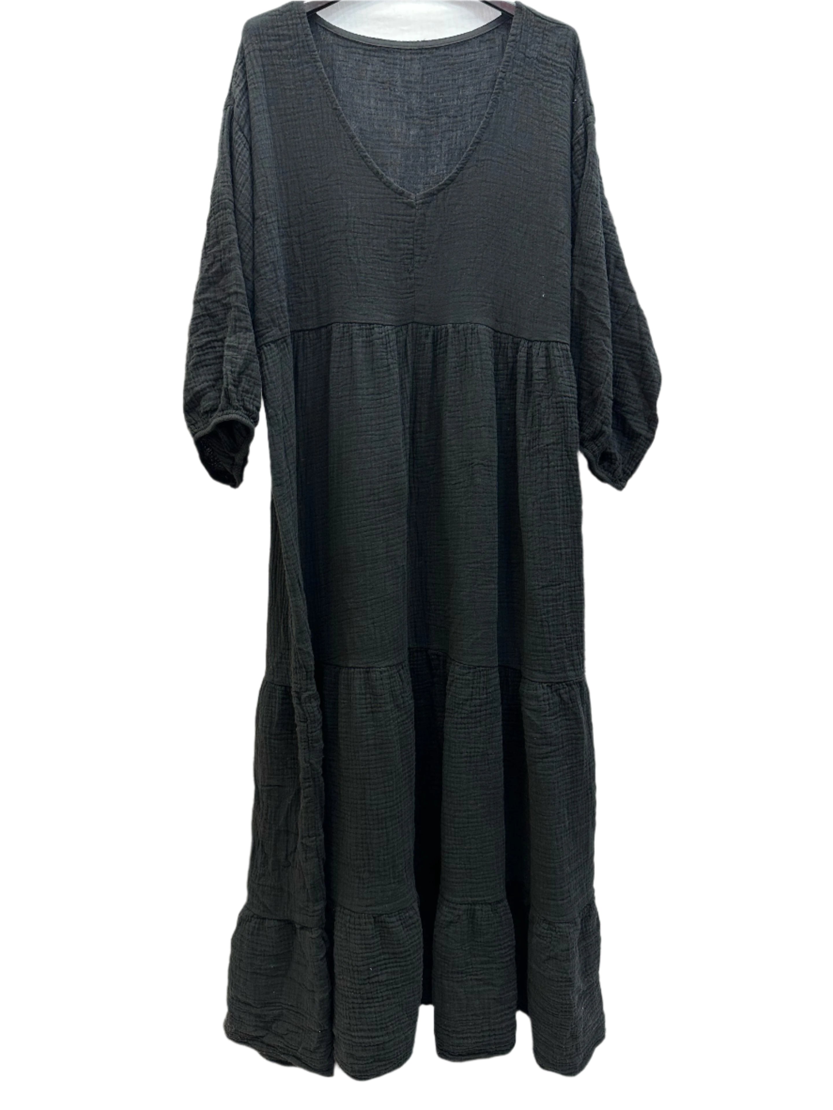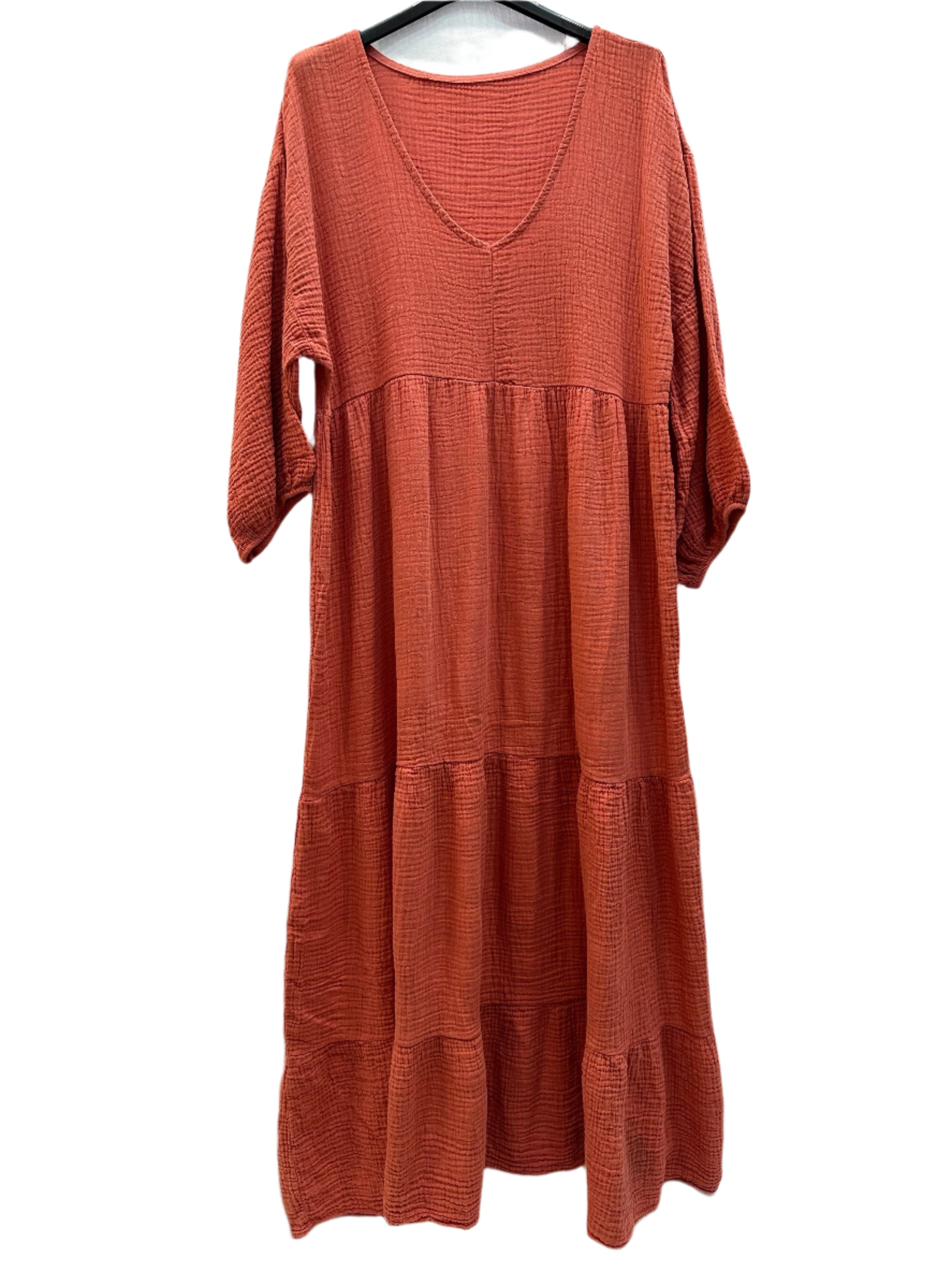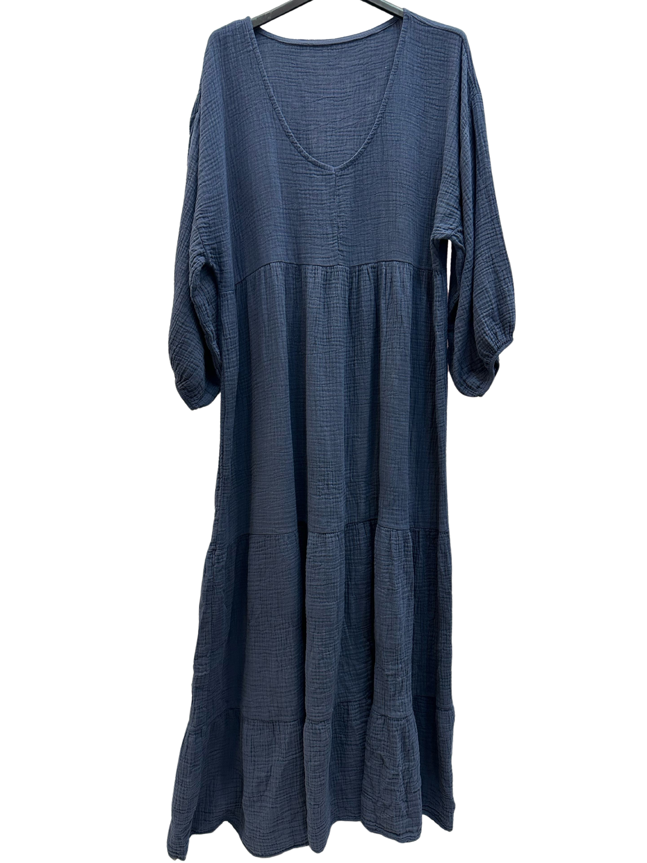 Offrez-vous confort et style avec notre robe longue taille unique en gaze de coton, à manches longues et col V. Fabriquée en Italie en gaze de coton 100 %, cette robe présente un col V flatteur et des poignets élastiqués pour un confort optimal. Disponible dans une large gamme de couleurs, elle conviendra parfaitement à toutes les femmes élégantes. Taille unique 40 - 44 (UK 12 - 16).