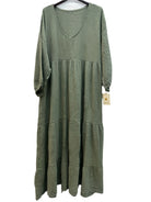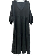 Robe longue à volants et manches longues en gaze de coton italien, taille unique