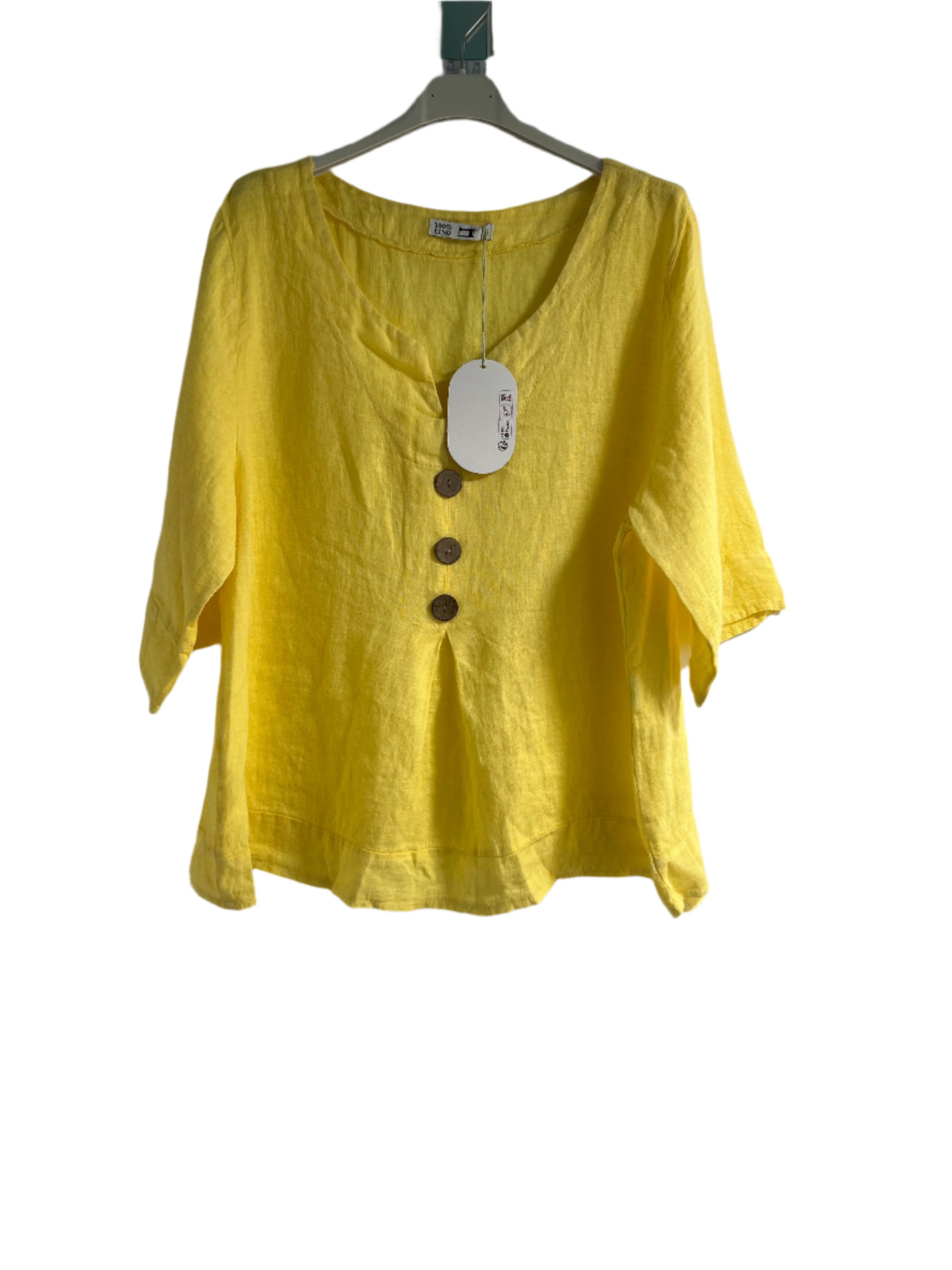 Découvrez l'élégance et le confort avec ce haut en pur lin Made in Italy, disponible en taille unique. Confectionné en lin 100 % respirant, il présente un col rond avec un détail en V à trois boutons et un devant plissé pour un style raffiné. Son ourlet structuré et sa coupe flatteuse, associés à des manches 3/4, le rendent parfait en toute occasion. Disponible dans une gamme de couleurs pour s'adapter à votre garde-robe sans effort. Adoptez le savoir-faire italien intemporel avec ce haut respirant et élégant.