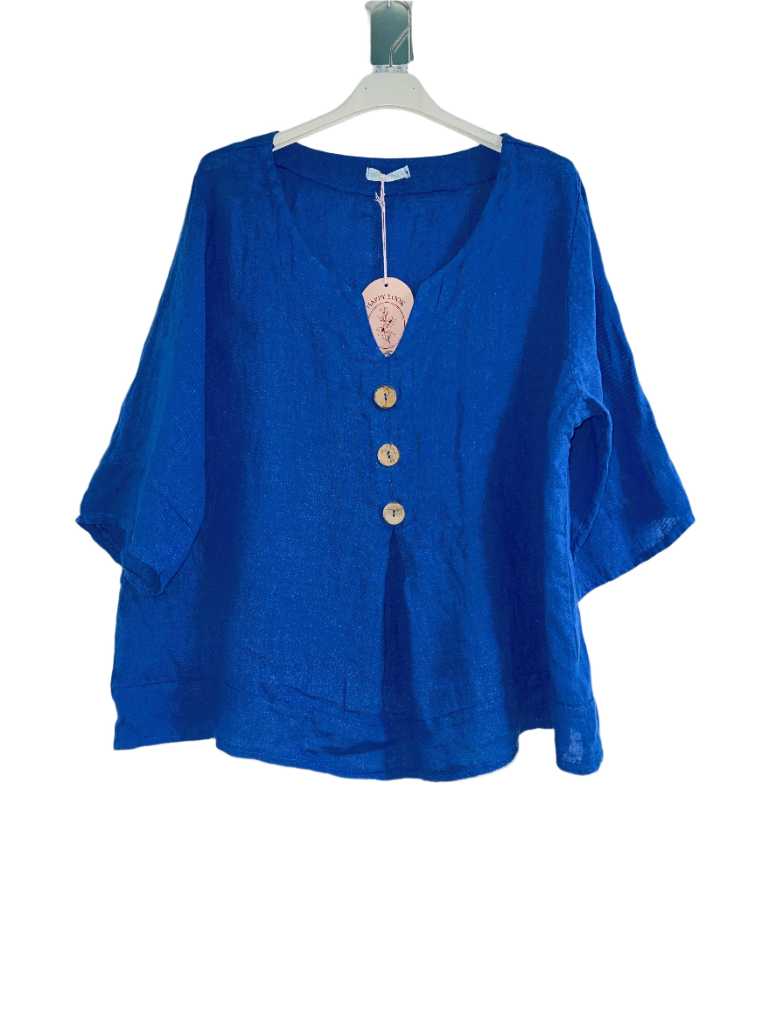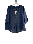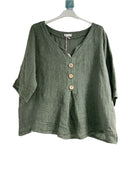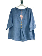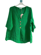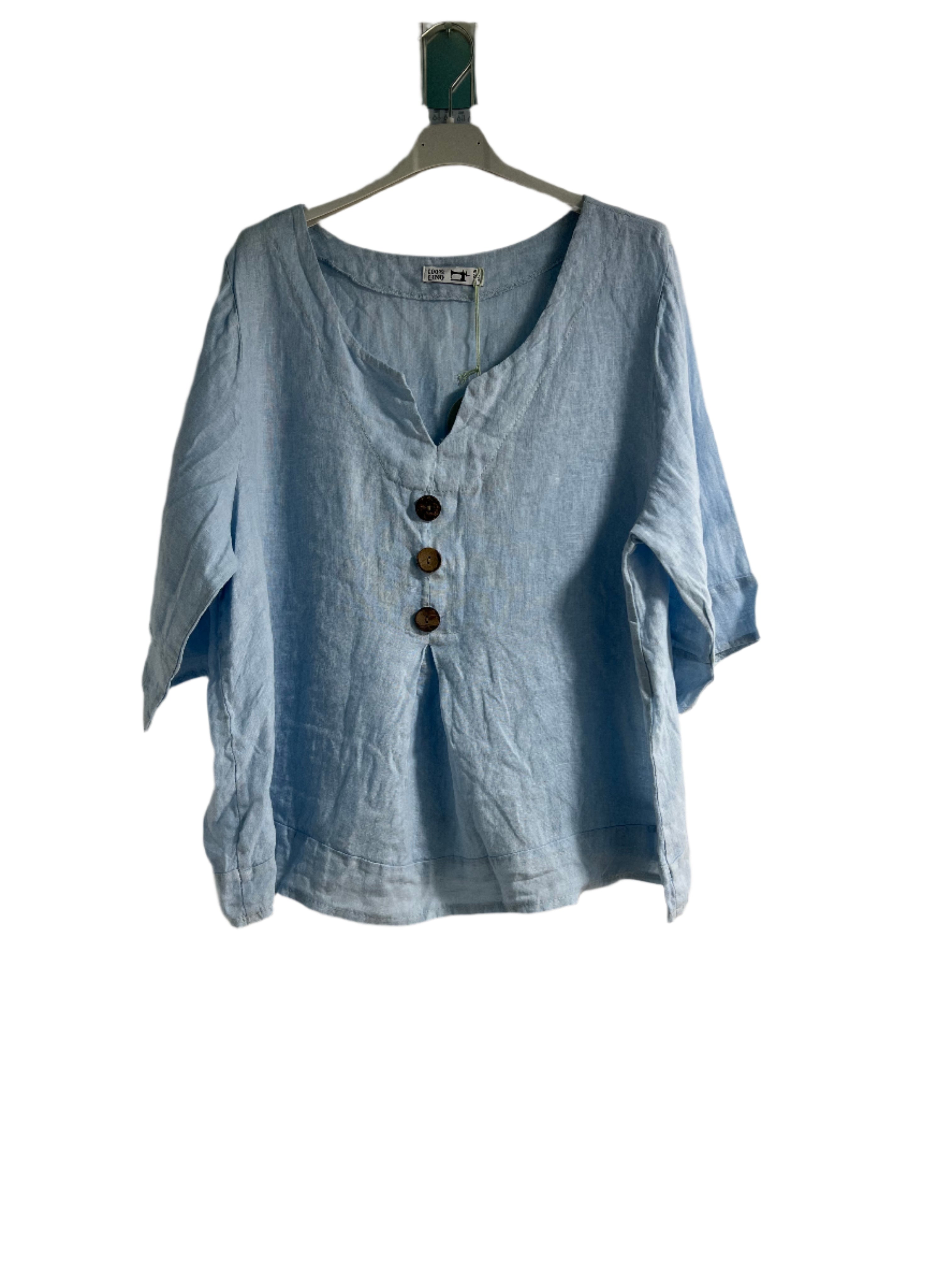 Fabriqué en Italie, taille unique, haut en pur lin à trois boutons
