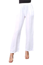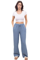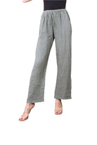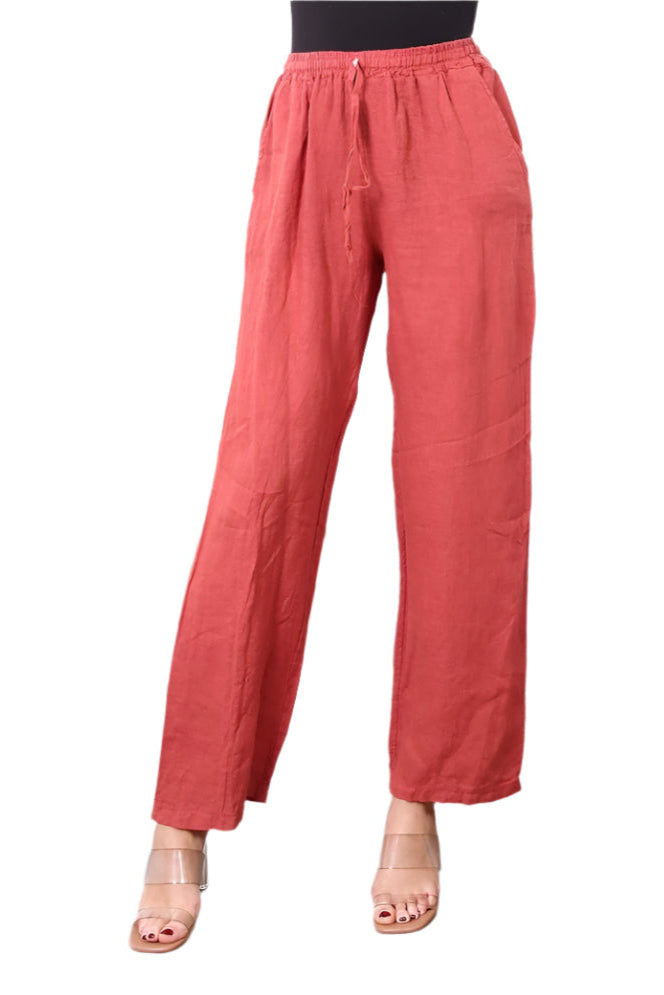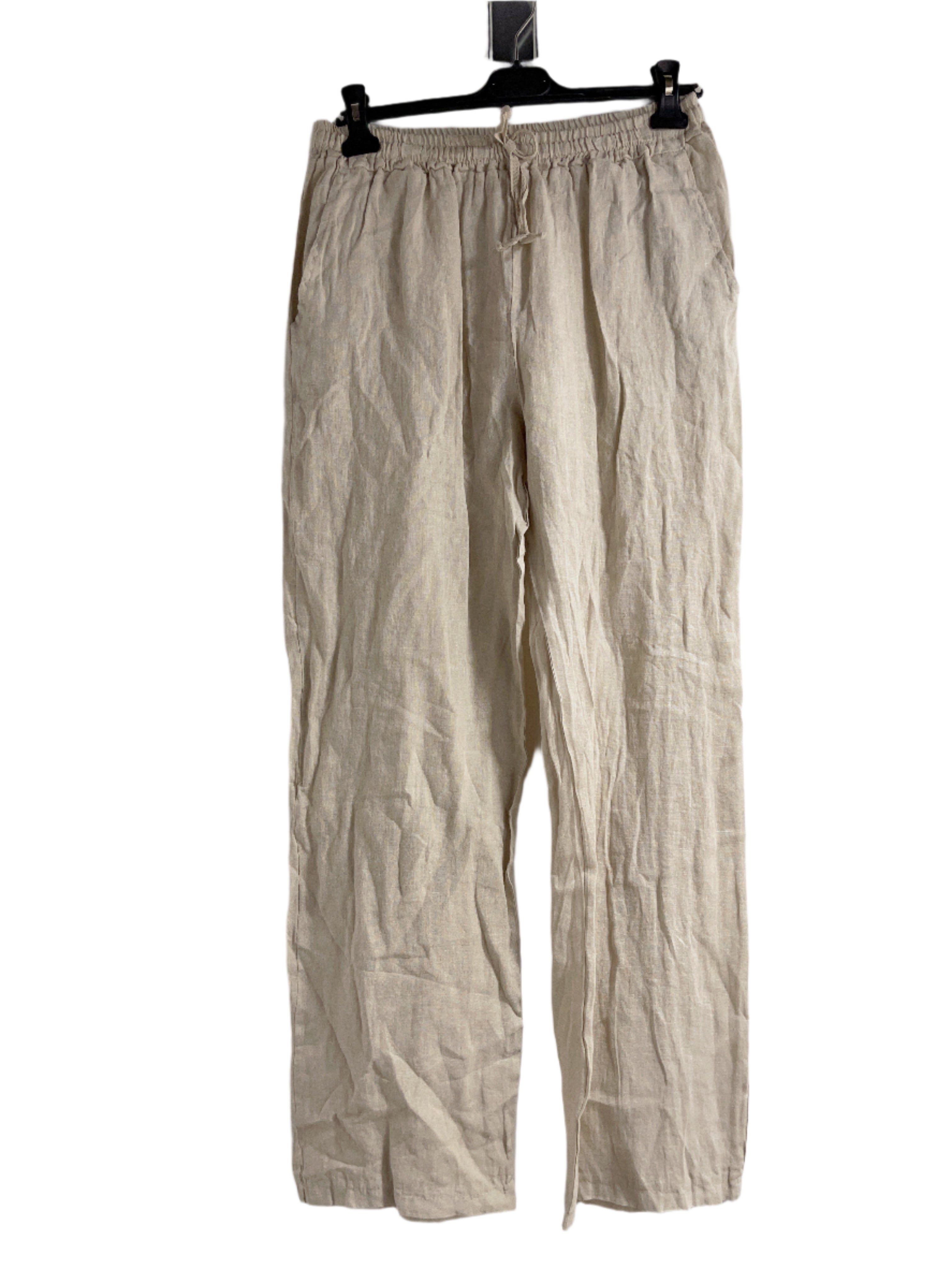 Pantalon droit en pur lin taille unique avec taille élastiquée