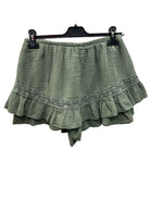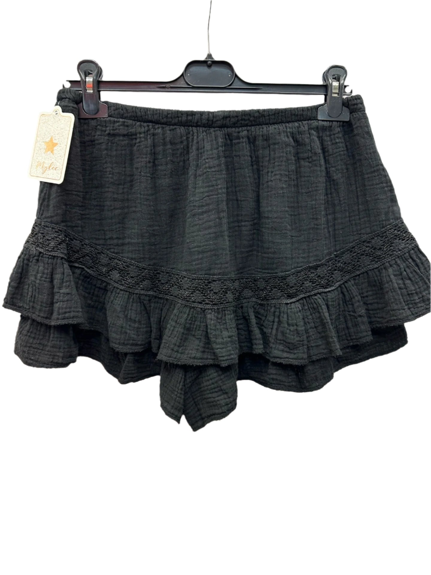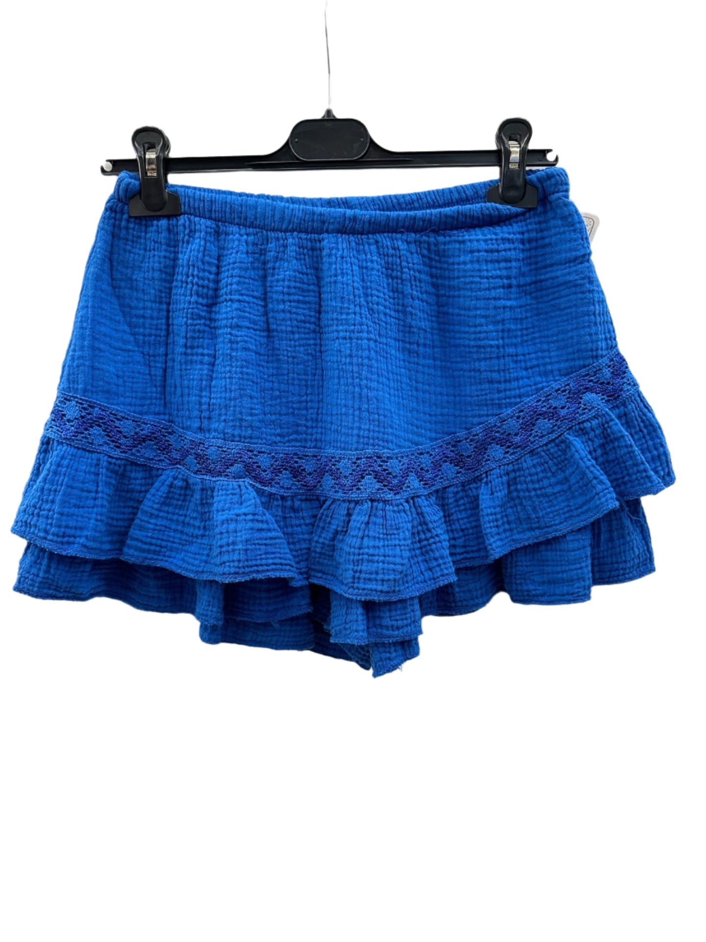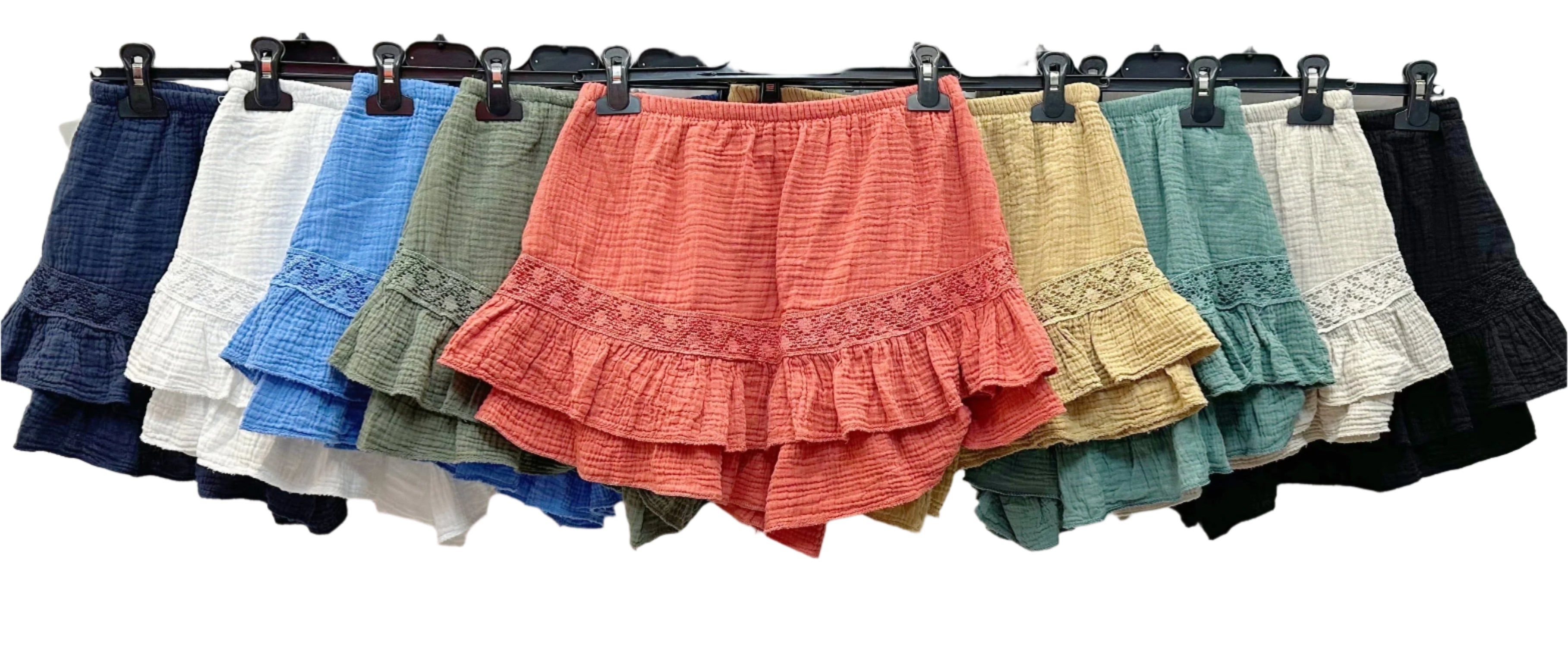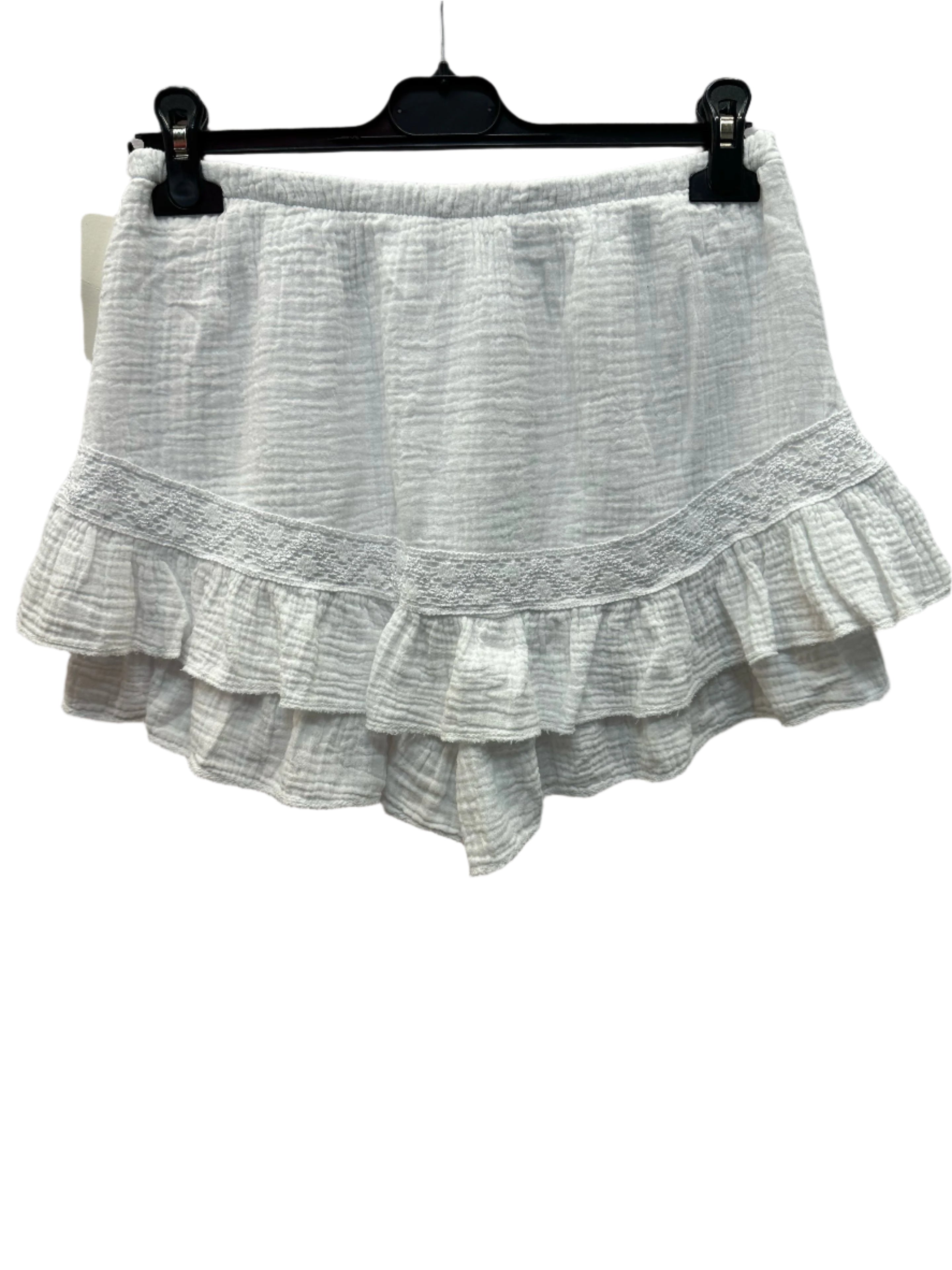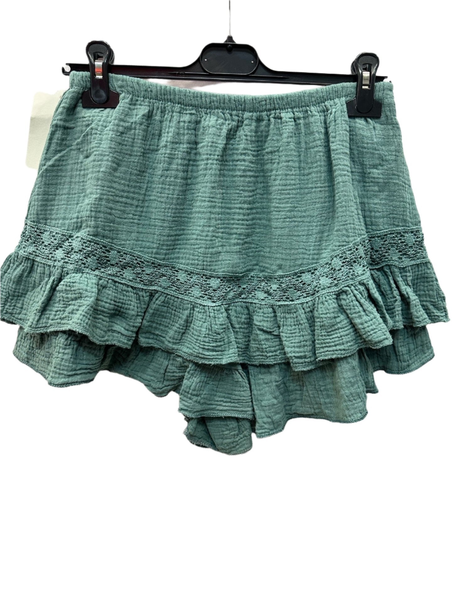 Profitez du meilleur des deux mondes avec notre short à jupe volantée Made in Italy ! Ce short taille unique est confectionné en double gaze de coton douce et respirante, idéale pour un confort optimal tout au long de la journée. Son design unique allie la légèreté d'un short à la silhouette flatteuse d'une jupe, ce qui en fait un incontournable pour toute femme à la pointe de la mode. Fabriqué en Italie avec un effet jupe volantée ultra-jeune et tendance, ce short sublimera toutes vos tenues.