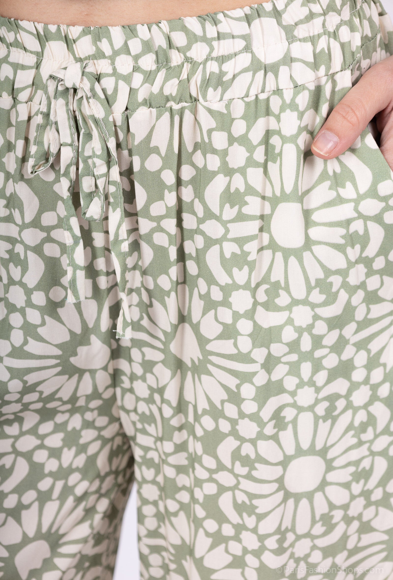 Pantalon imprimé de confection italienne, conçu avec expertise, avec une coupe ample confortable et une taille élastiquée pratique. Doté de deux poches avant pratiques et confectionné en 100 % viscose premium, il offre une douceur et une respirabilité incomparables. Sa taille unique polyvalente convient aux tailles 36 à 42 (UK 8-14).