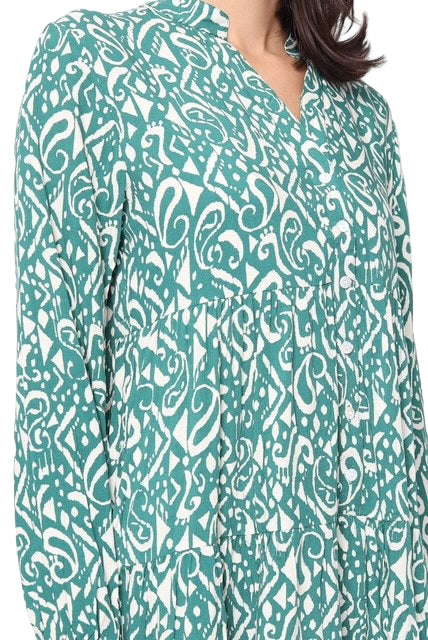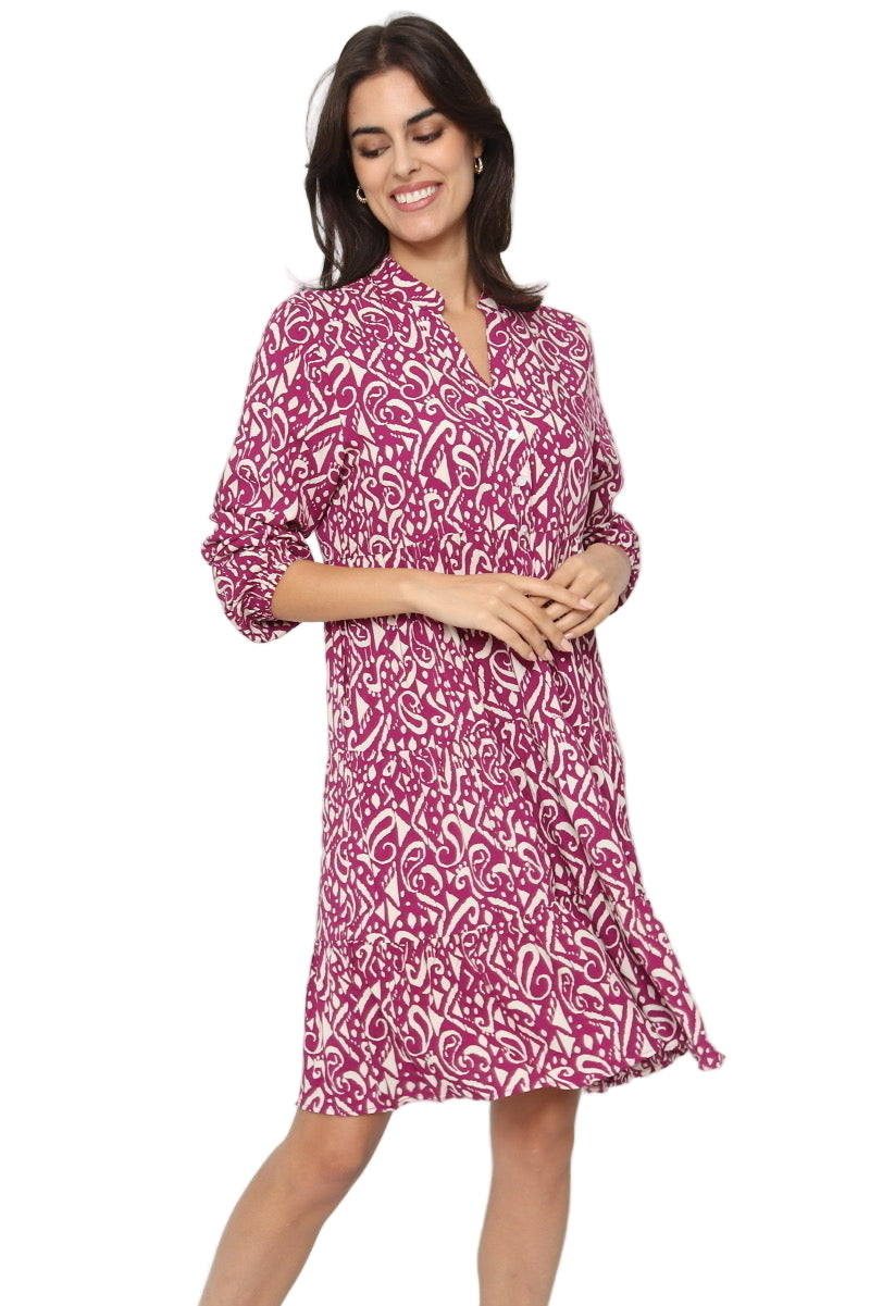 Cette robe courte et évasée chic présente des manches longues et un col en V tendance. Confectionnée en 100 % viscose pour une coupe fluide et douce, elle est disponible en deux tailles polyvalentes : S/M 38-40 (UK 10-12) et M/L 42-44 (UK 14-16).