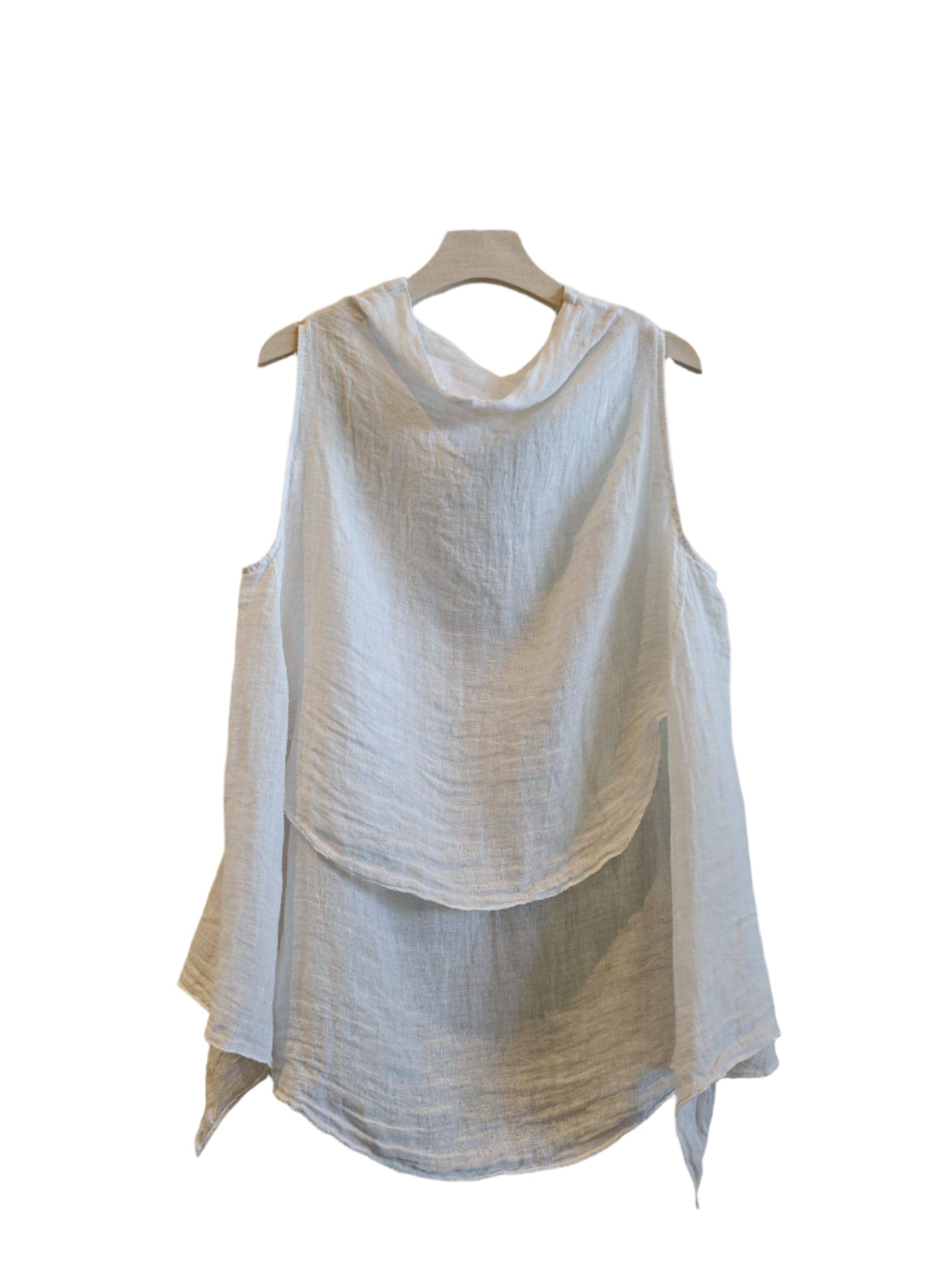 Ce chemisier sans manches à col montant, confectionné en 100 % lin, offre un confort respirant et un look chic et intemporel. Sa coupe unique, d'une longueur d'environ 46 cm devant et de 66 cm derrière, crée une silhouette élégante qui met en valeur toutes les silhouettes. Idéal pour les journées chaudes ou pour les superpositions, ce haut taille unique allie style et aisance sans effort. 38 - 46 (UK 10 - 18)