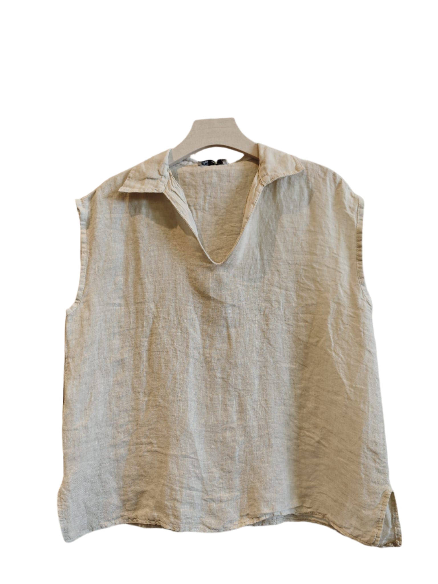 Haut sans manches style chemise en lin fabriqué en Italie, taille unique