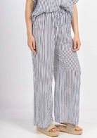 Pantalon rayé en coton à taille élastiquée, taille unique