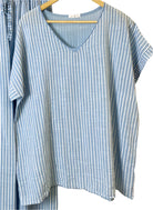 Haut rayé en coton à col V ! 100 % coton, ce haut élégant est à la fois facile à porter et à entretenir. Conçu pour les tailles 40-42 (UK 12-14), il est parfait en toute occasion. Complétez votre look avec notre pantalon assorti (vendu séparément). Fabriqué en Italie pour une touche d'élégance européenne.