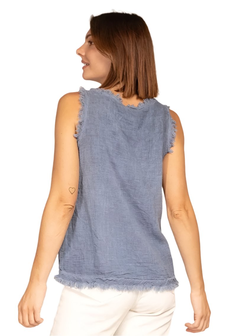 Débardeur en coton et lin italien à bords effilochés, taille unique