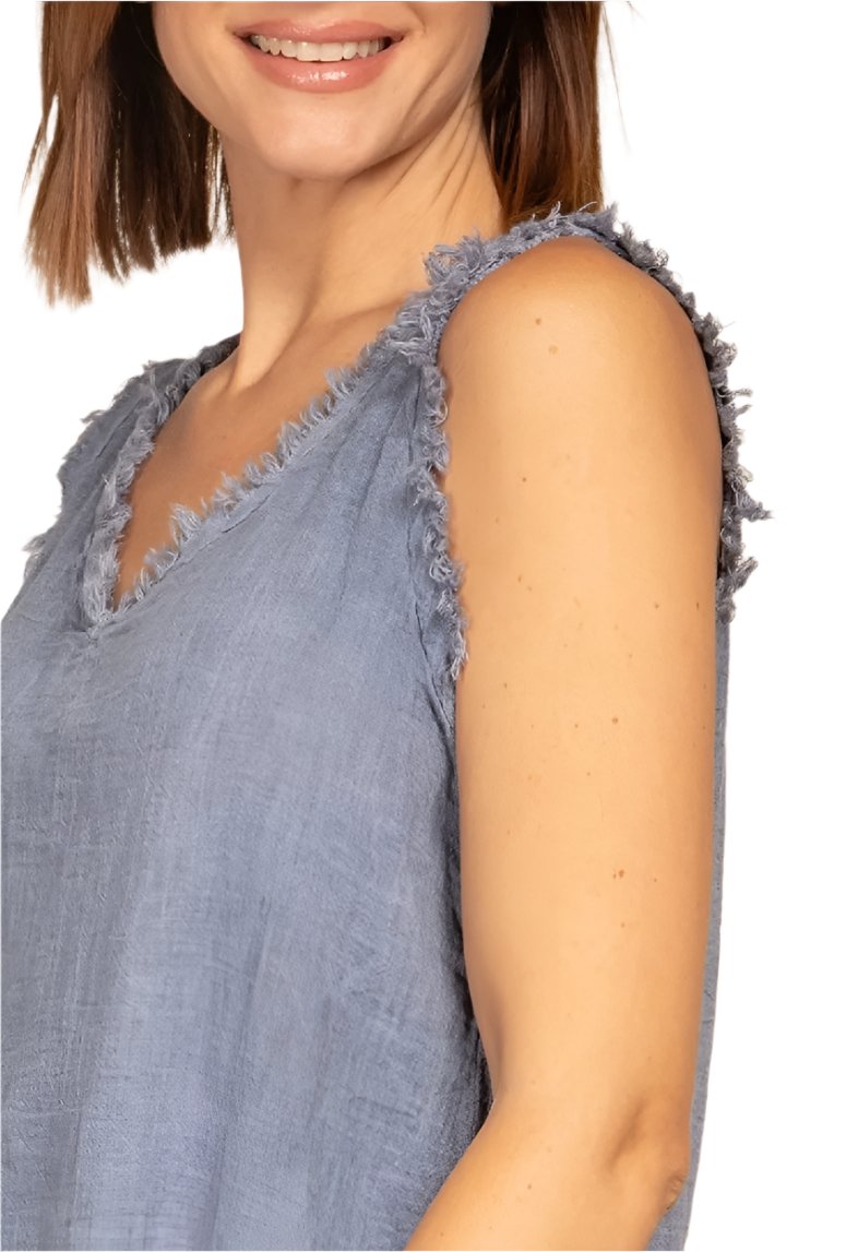 - Haut sans manches à bordure effilochée