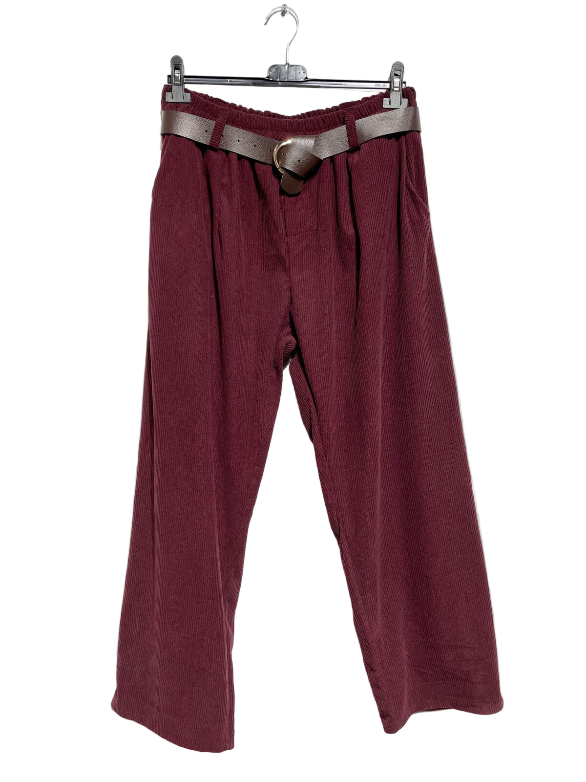 These slightly thick wide leg velour trousers combine comfort and flexibility, making them perfect for everyday wear. Designed with practical pockets and a brown belt, they offer a waist size range from 76cm to 136cm and a length of 95cm, fitting sizes 40 to 50 (UK 12-22). Made from 100% polyester, these trousers provide a flattering fit that adapts to your shape while delivering all-day comfort and style.