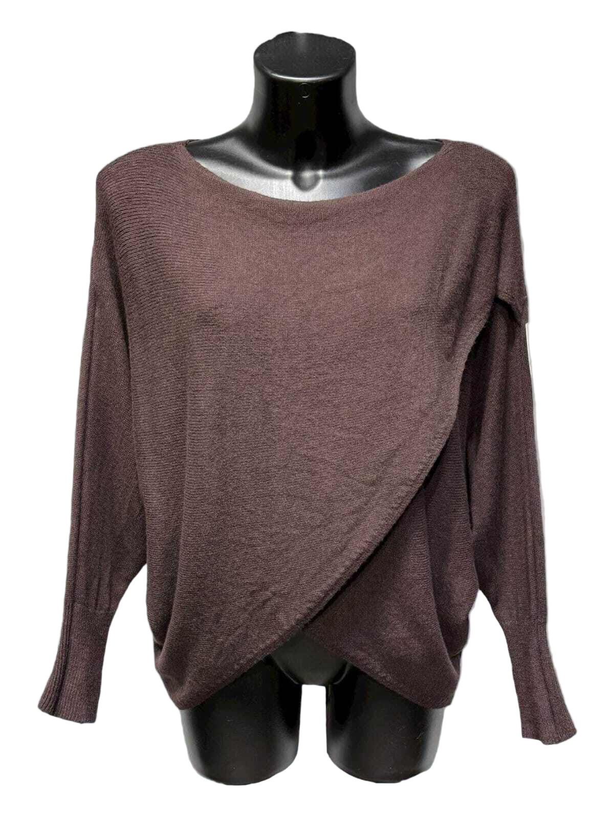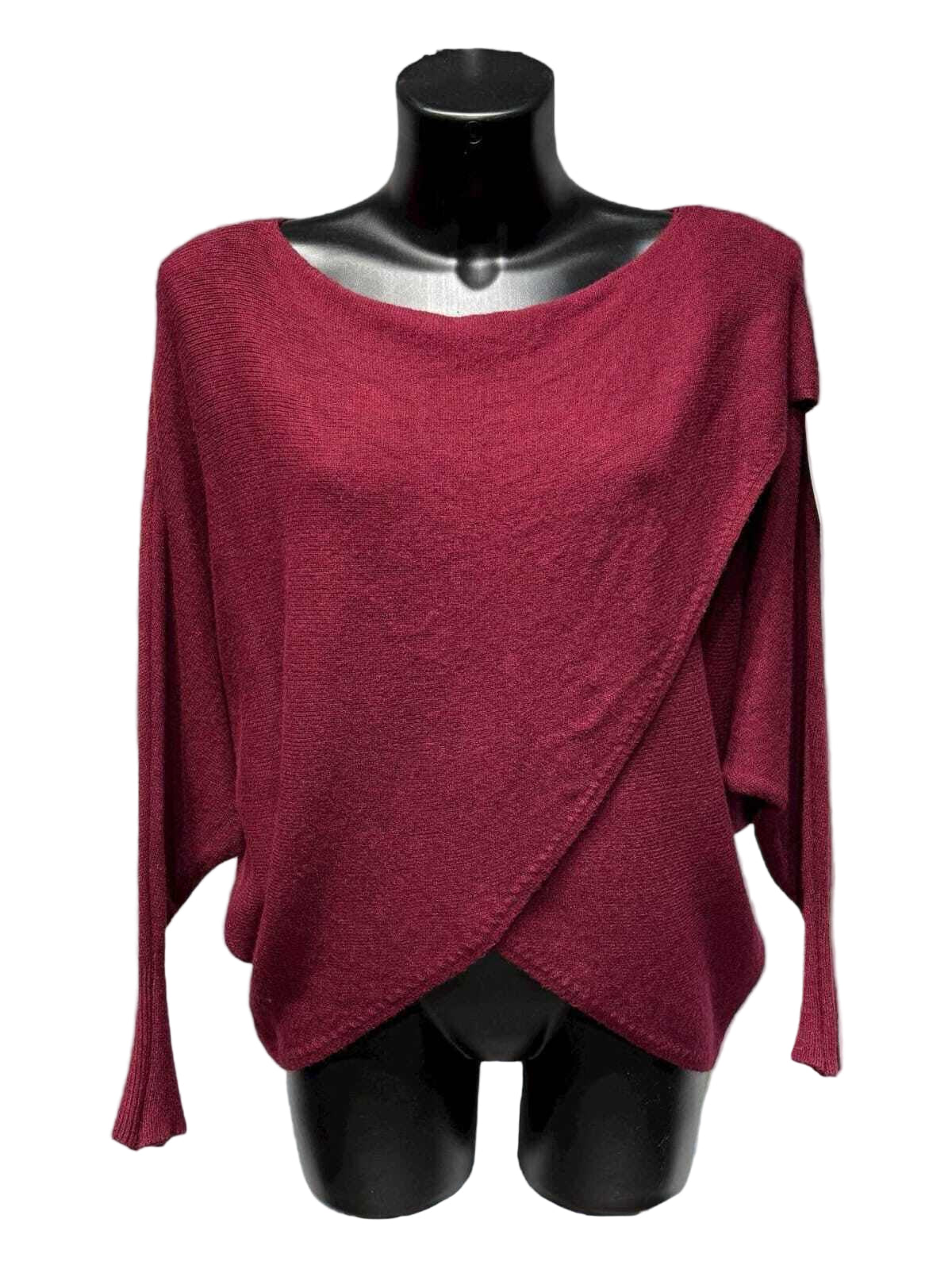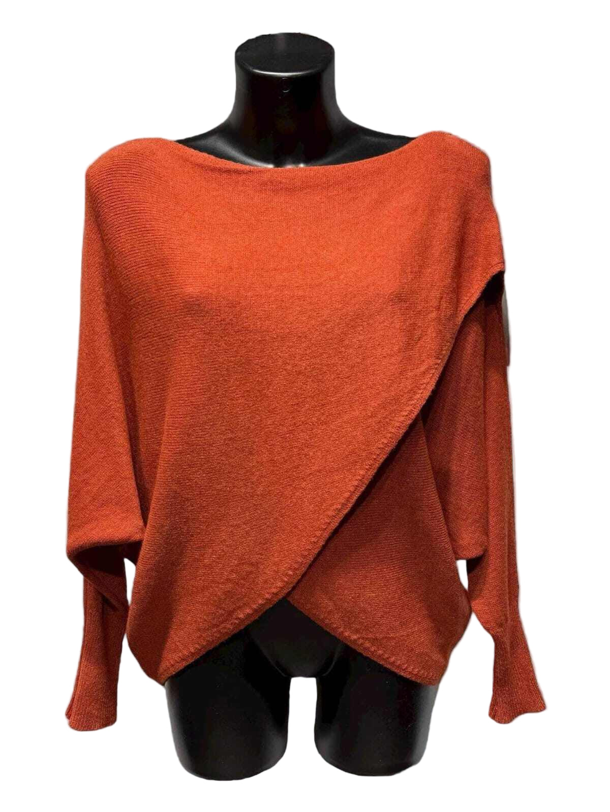 Italian oversized sweater, crafted from a blend of viscose, polyamide, polyester and cashmere. The crossover front and refined boat neckline create a flattering silhouette that transitions seamlessly from season to season. Designed in one size 36-44 (UK 8-16), this versatile piece delivers the perfect balance of understated comfort. Whether layered or worn alone, it's the essential wardrobe staple that effortlessly elevates any autumn ensemble with timeless style.