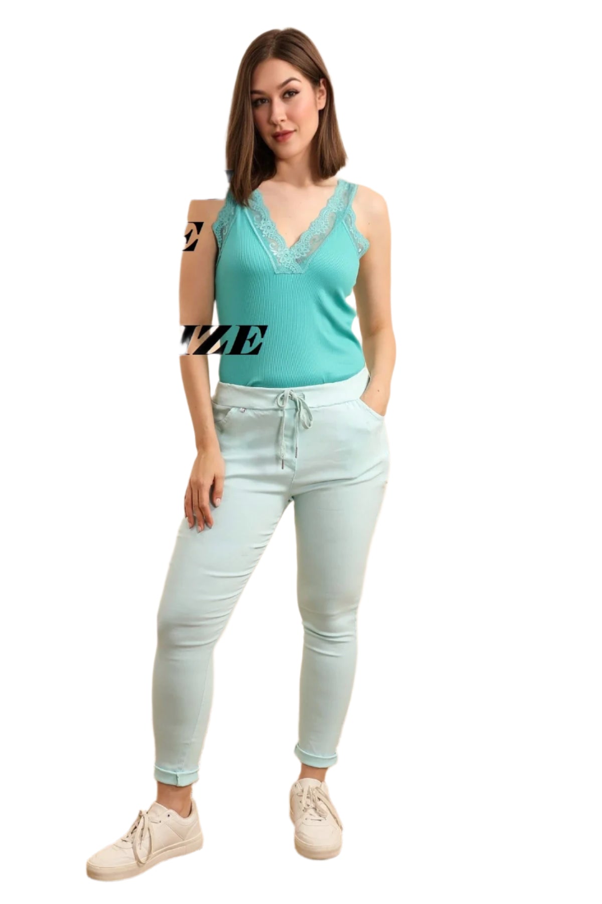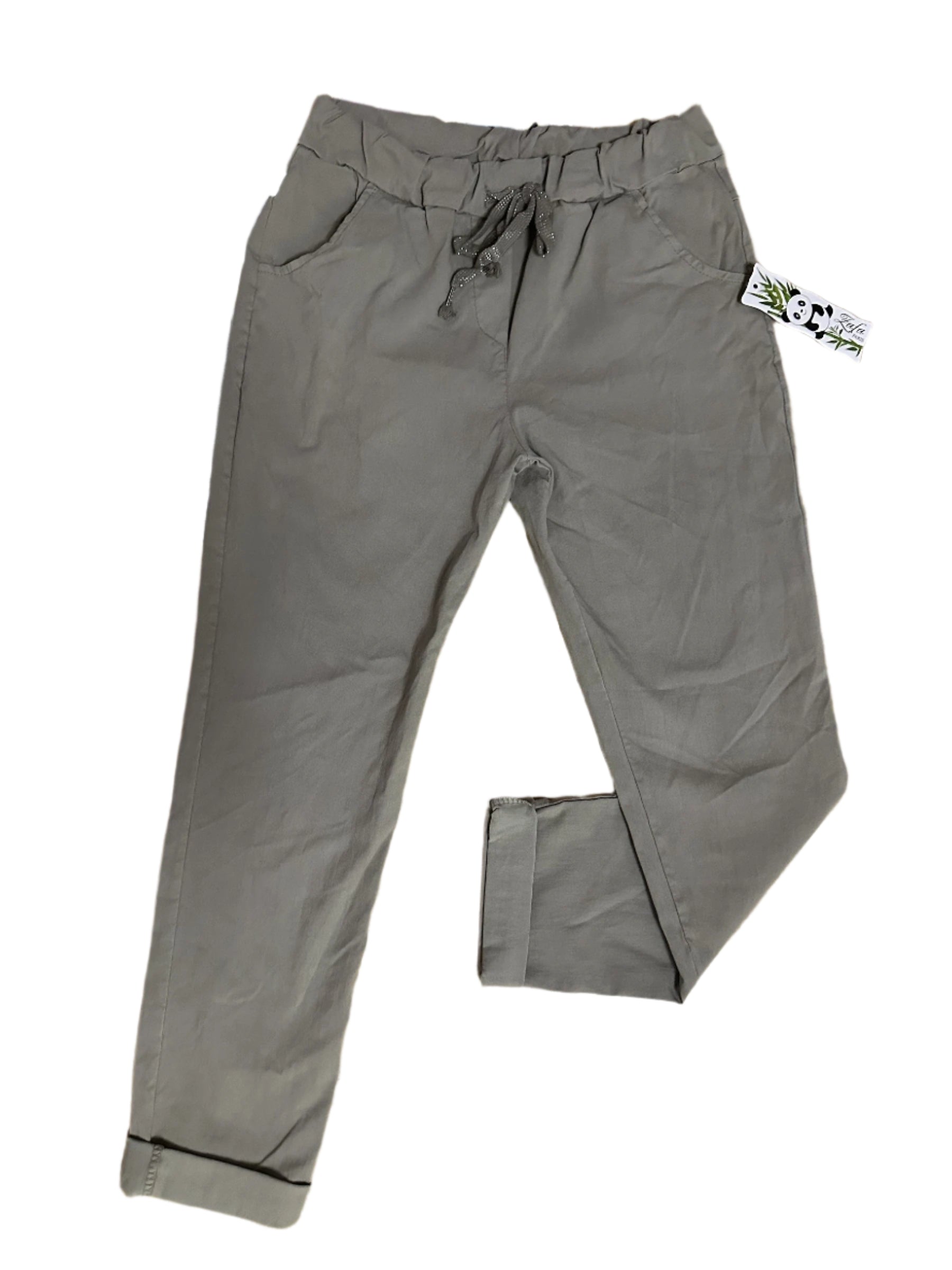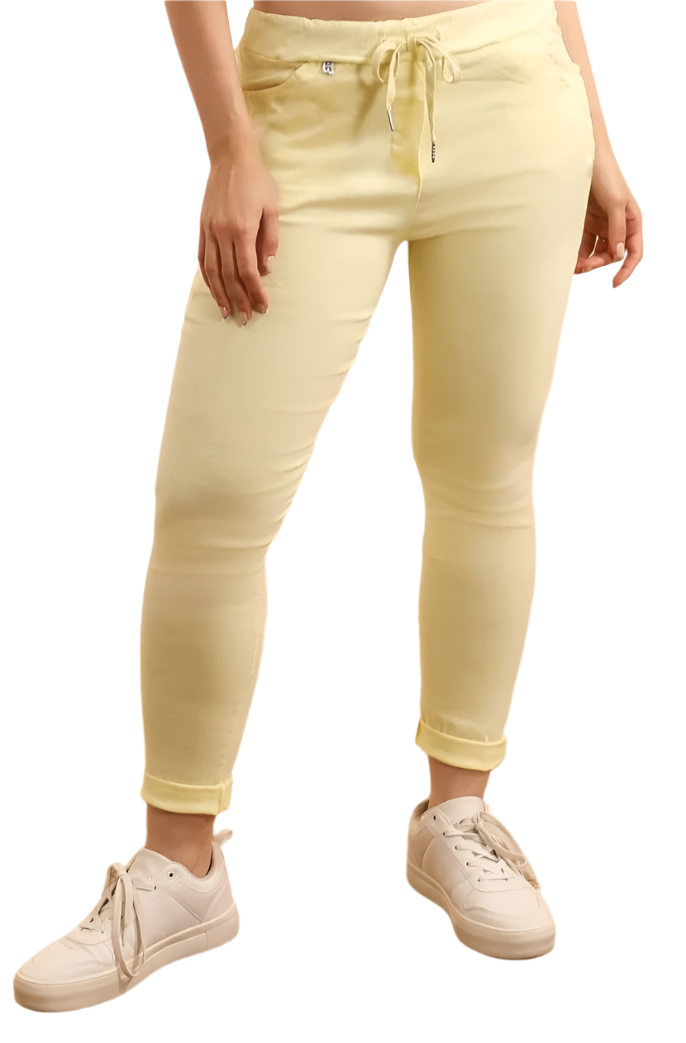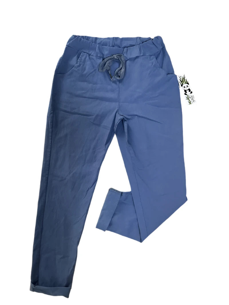 Experience the magic of comfort with our magic stretch Italian trousers! Made from a blend of 95% cotton and 5% elastane, these trousers stretch to fit your body perfectly. The elastic waistband with drawstring fastening provides added comfort while the pockets offer convenience. Available in plus sizes up to 52 (UK 24), these trousers are super comfortable and easy to wear. Say goodbye to uncomfortable clothing and hello to effortless style with our Italian magic stretch trousers!