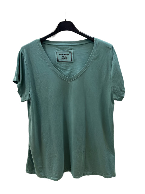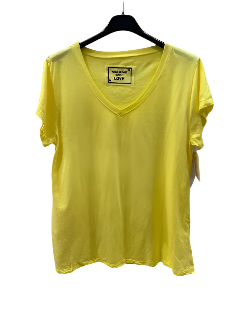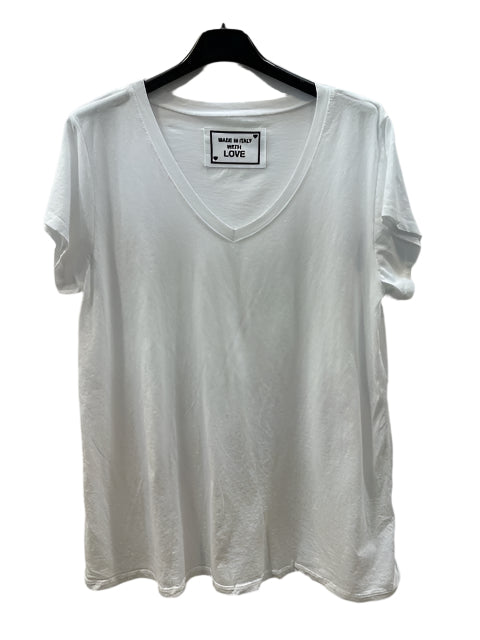This premium 100% cotton V-neck T-shirt is crafted with care in Italy. The flattering V-neckline and short sleeves create a versatile silhouette that complements any outfit. Designed to fit sizes 38-44, this one-size wonder offers both comfort and style for everyday wear.