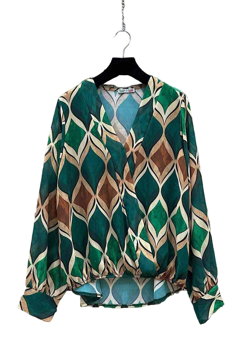 Discover elegance and comfort with this Printed Fluid Blouse Made in Italy. Featuring a delicate wrap-style front and romantic cuffed sleeves, its floaty fabric and elasticated hem ensure a flattering fit for sizes 38-40. Crafted from 100% polyester, this blouse combines Italian craftsmanship with effortless style, perfect for elevating any outfit with a feminine touch.