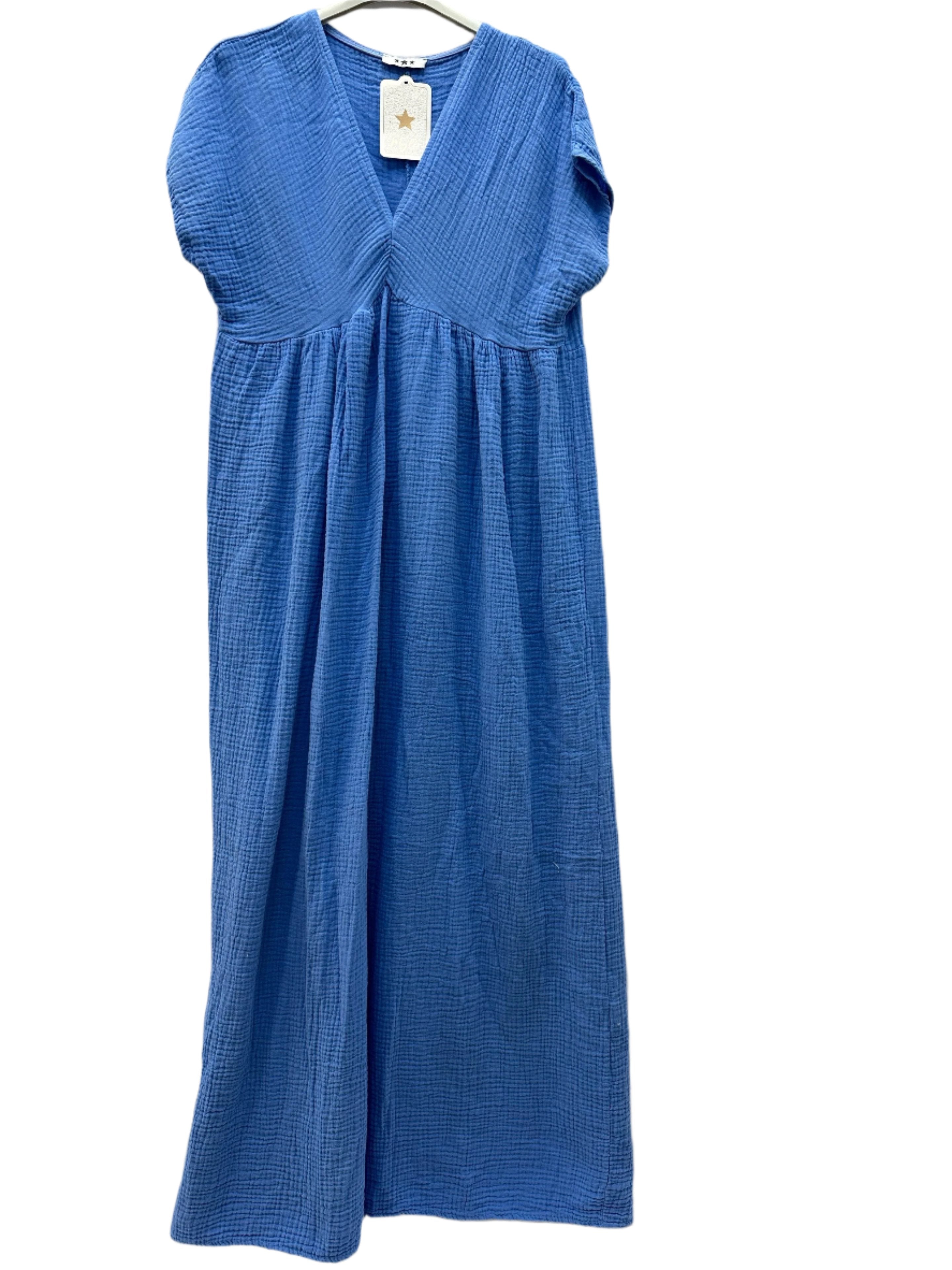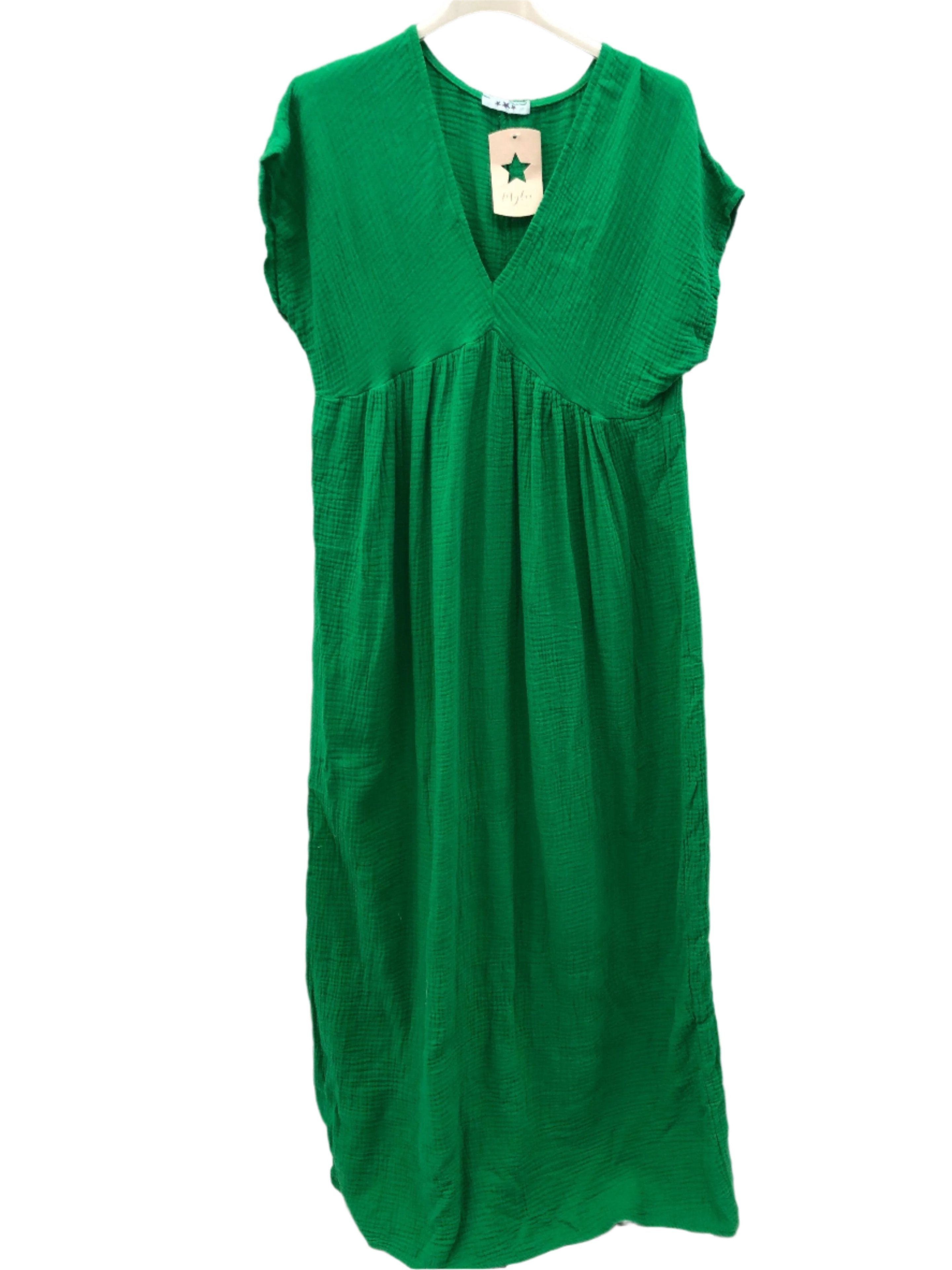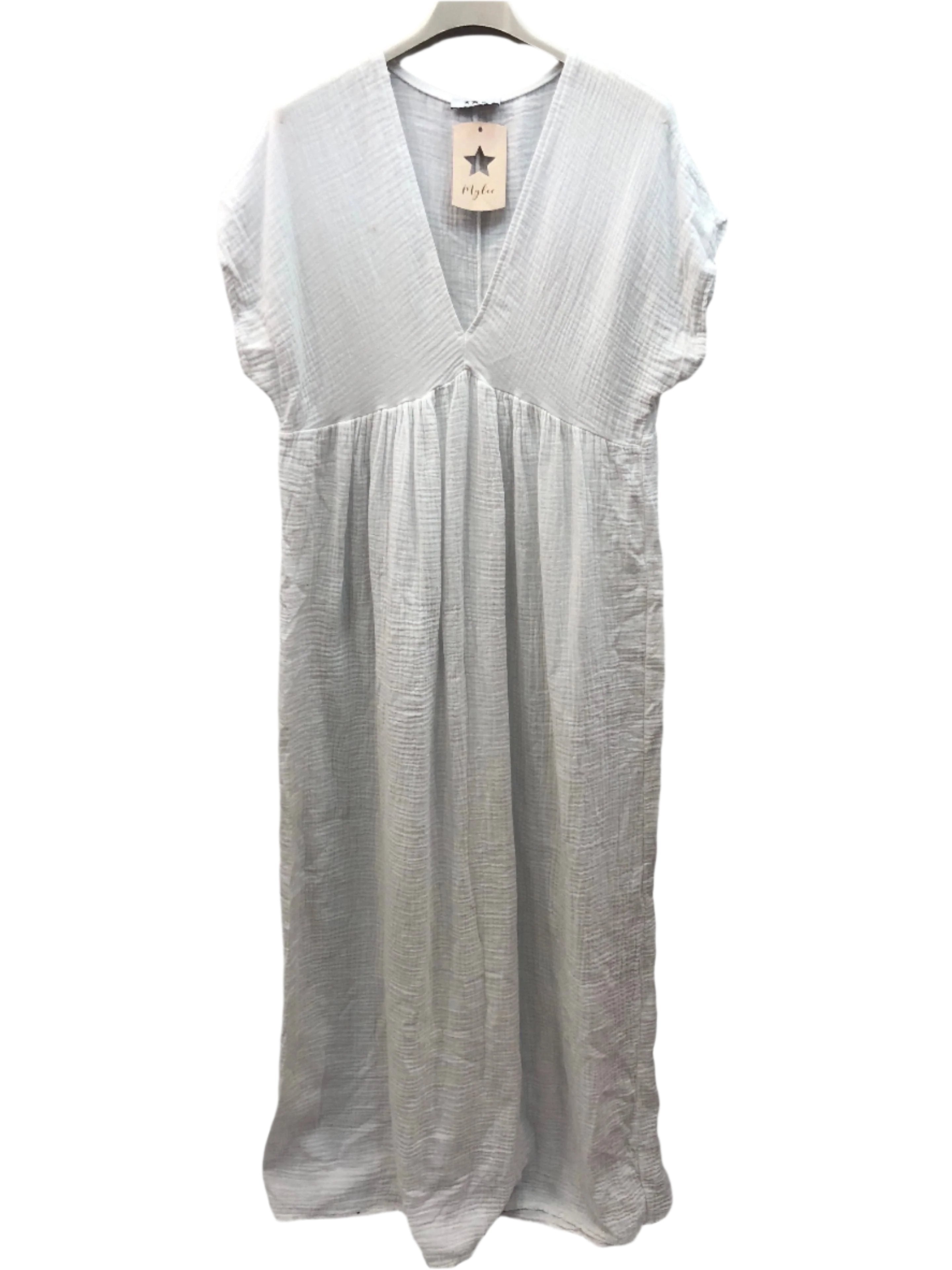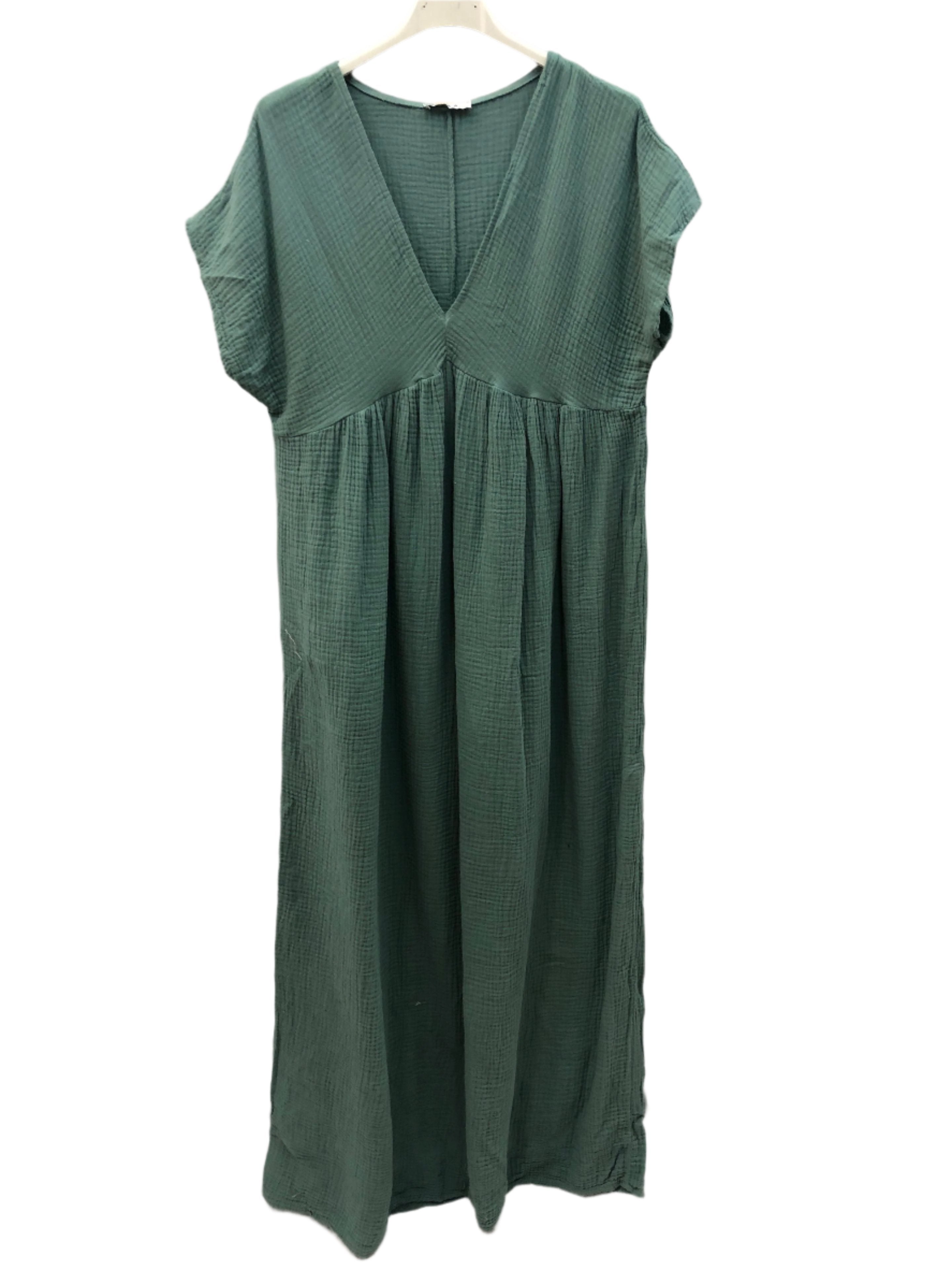 Robe longue italienne en gaze de coton à devant en V, taille unique