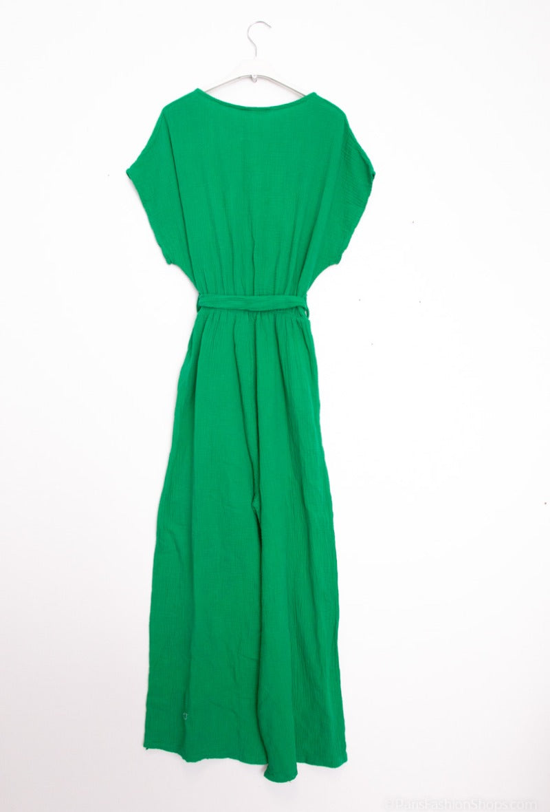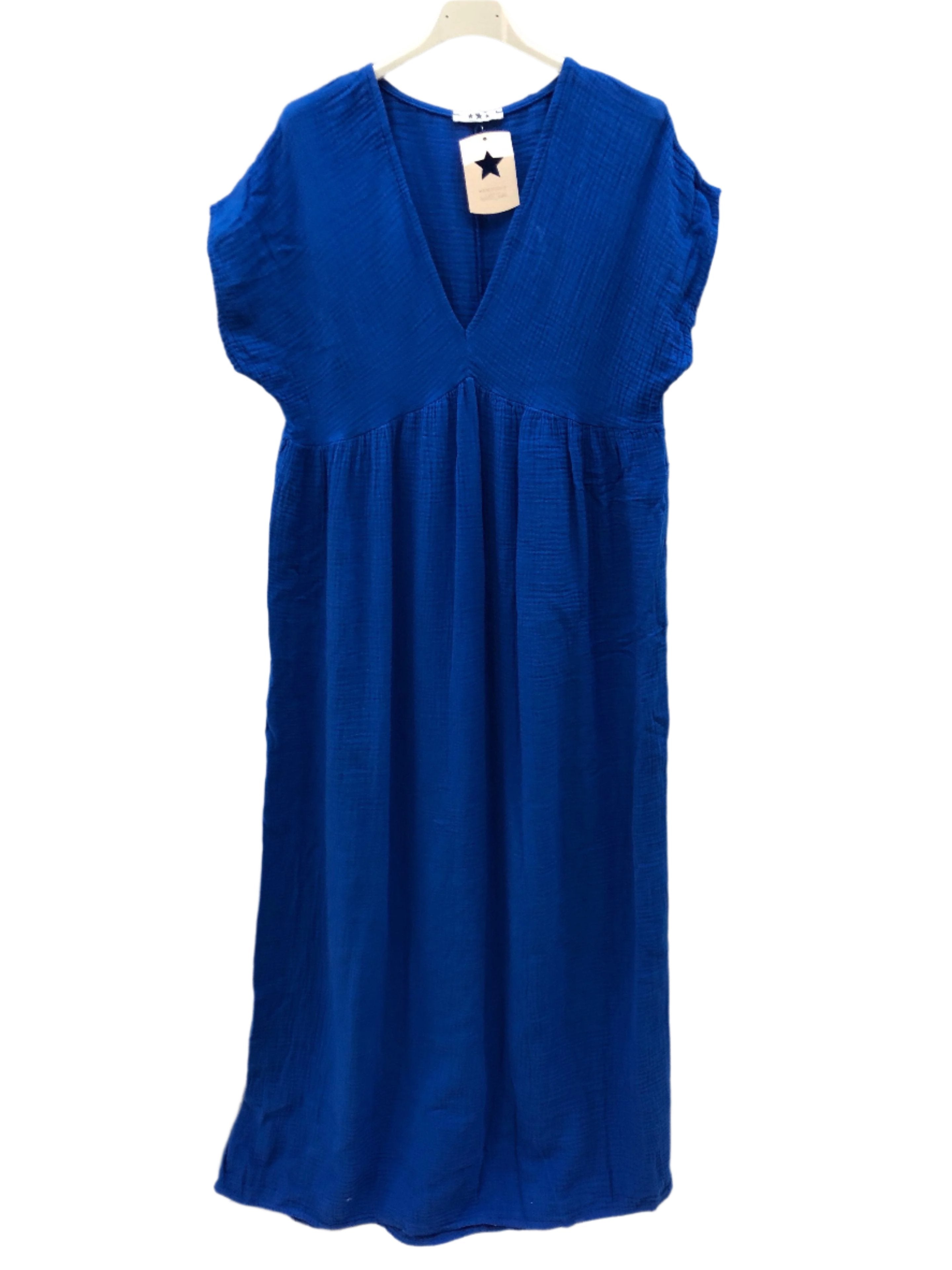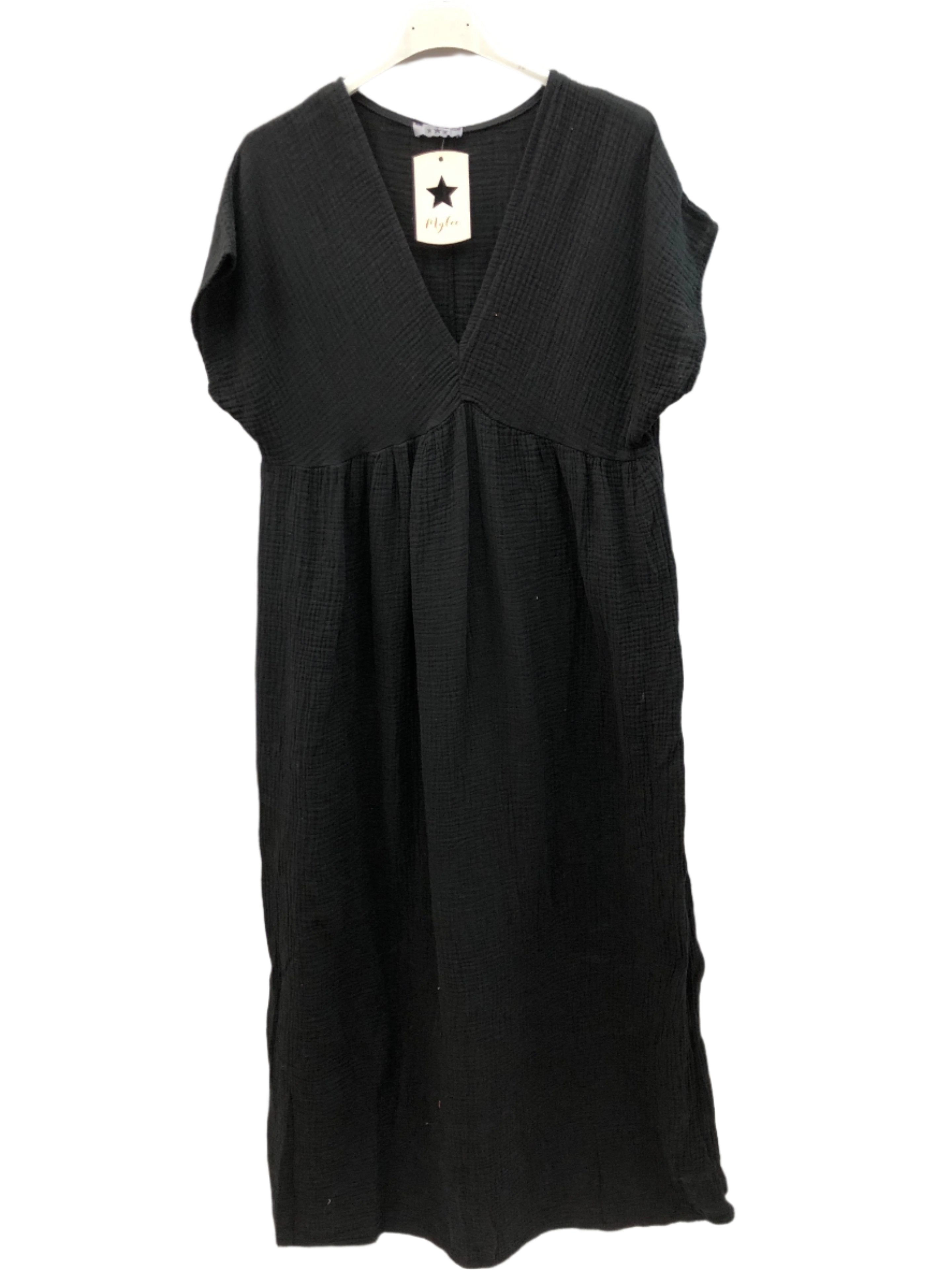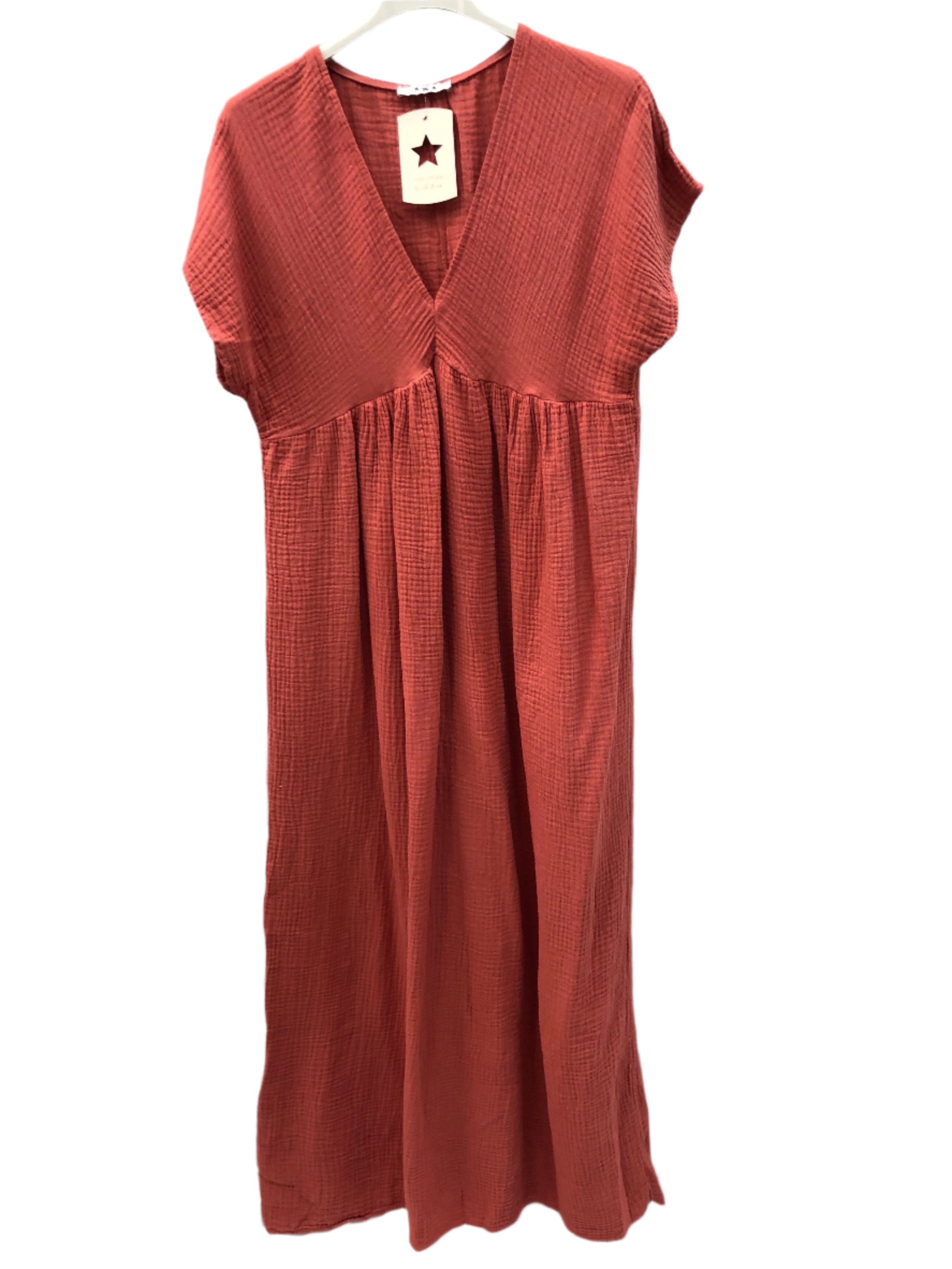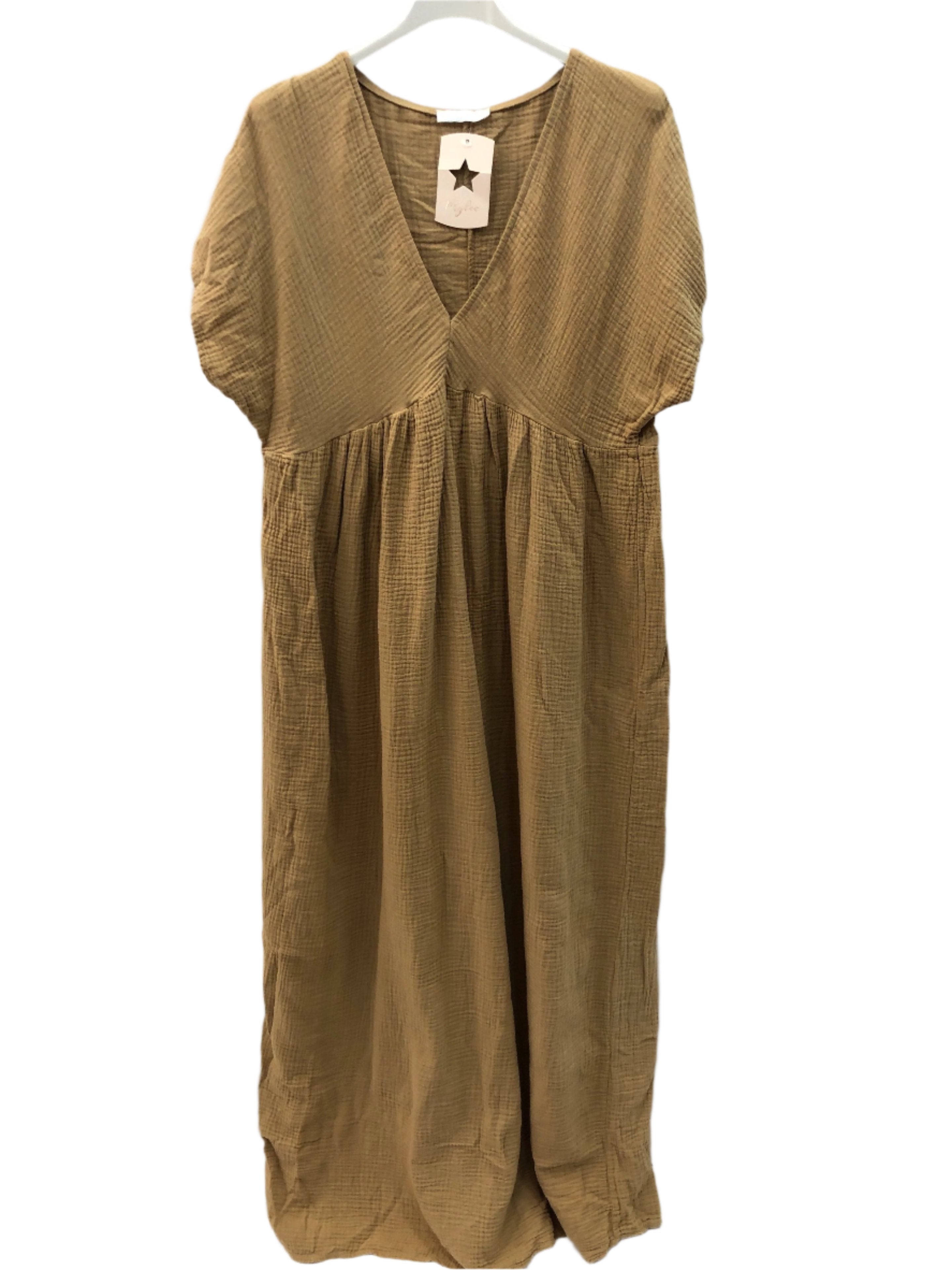 Robe longue italienne en gaze de coton à devant en V, taille unique