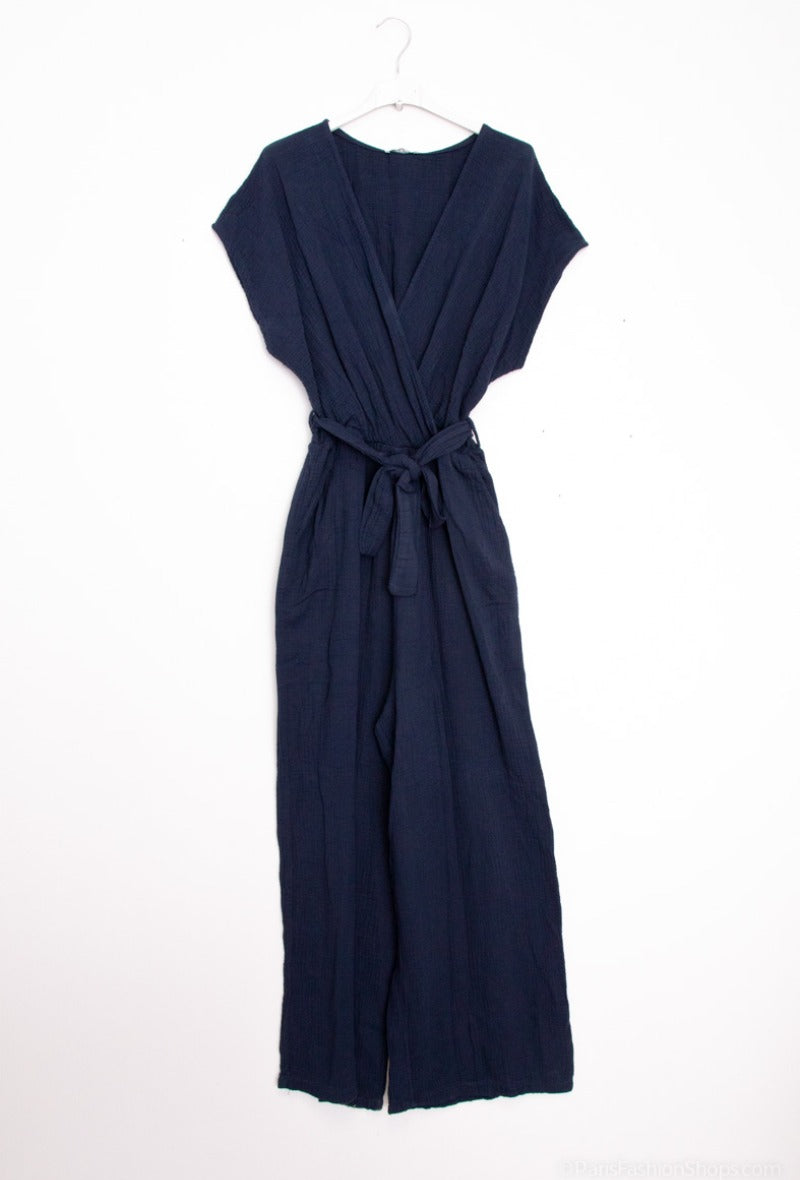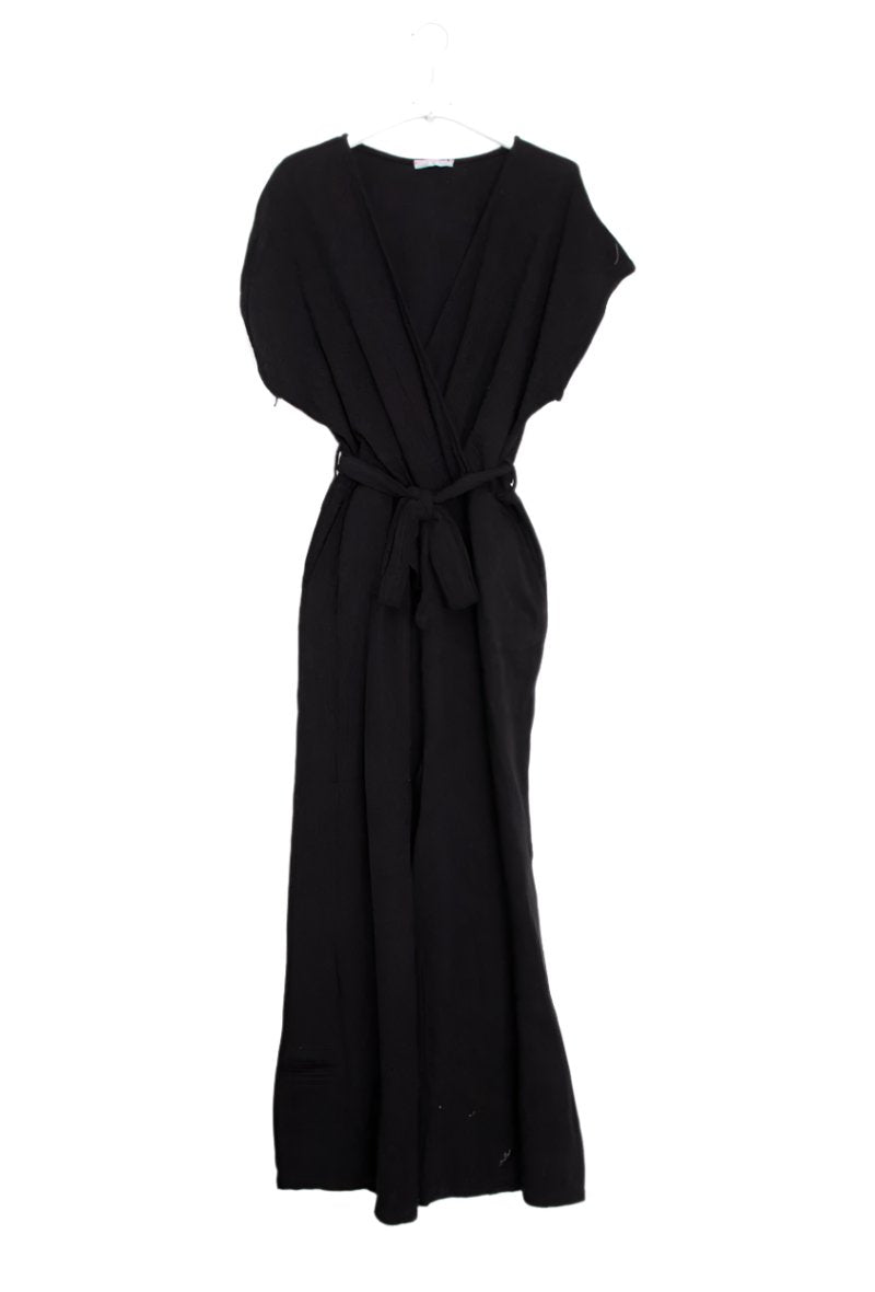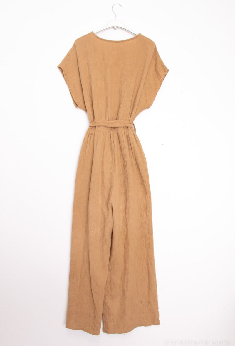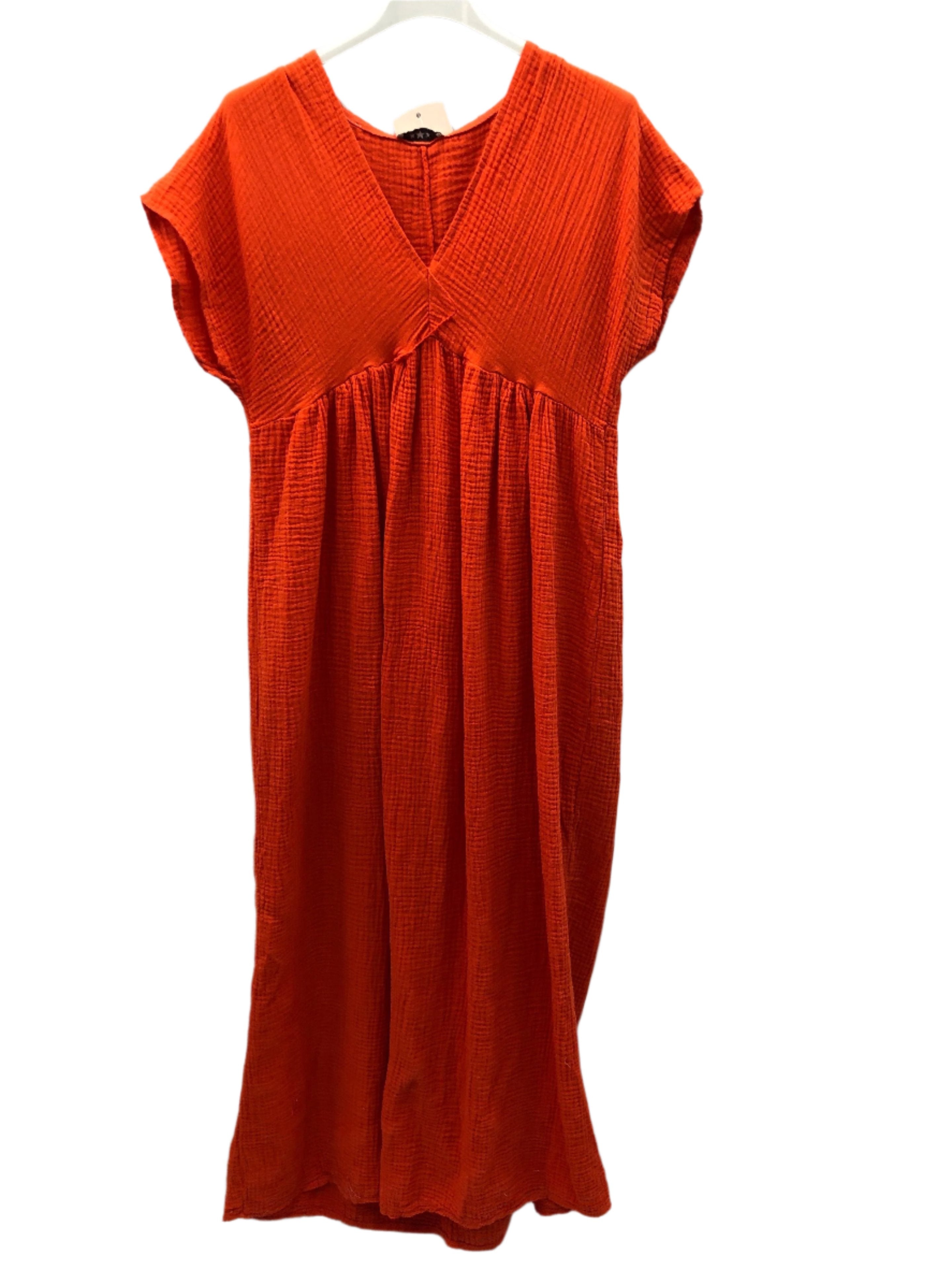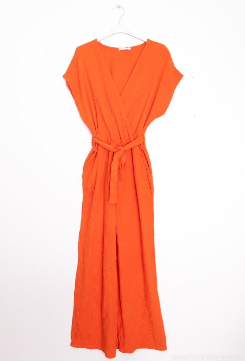 Robe longue italienne en gaze de coton à devant en V, taille unique