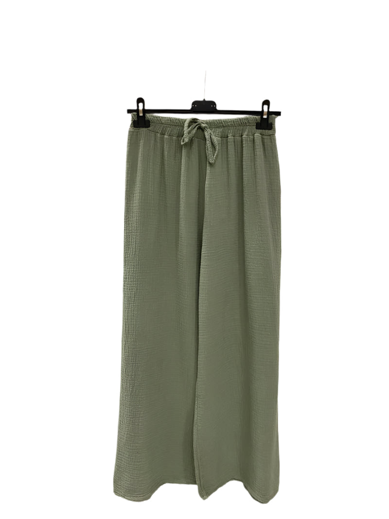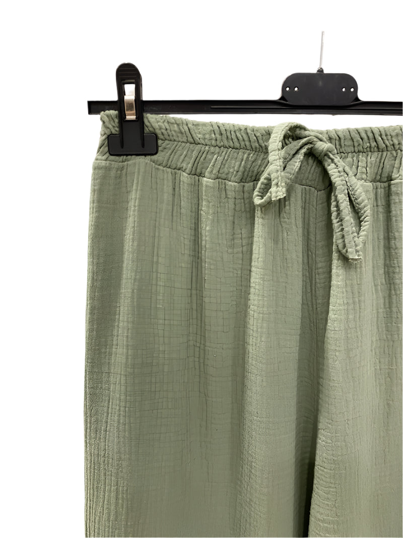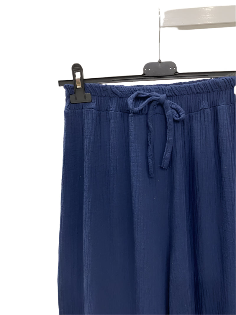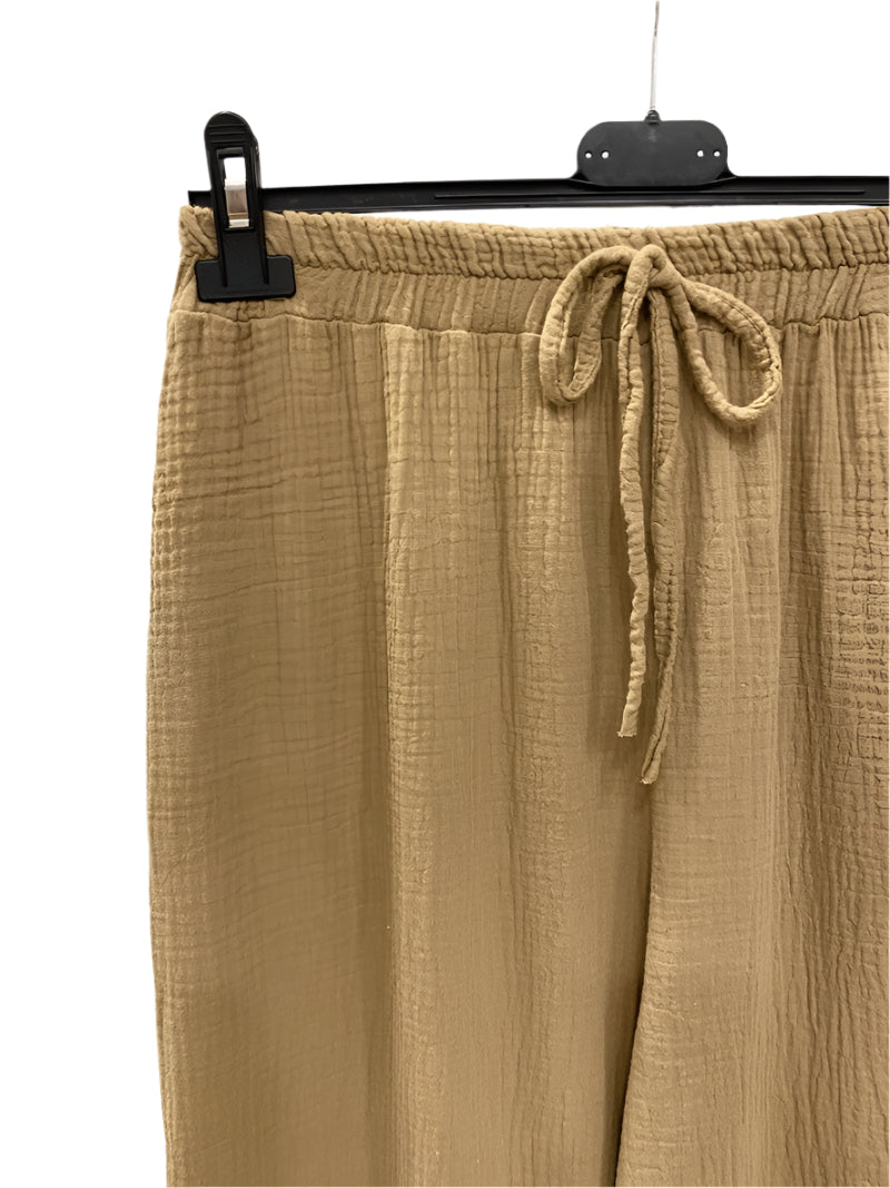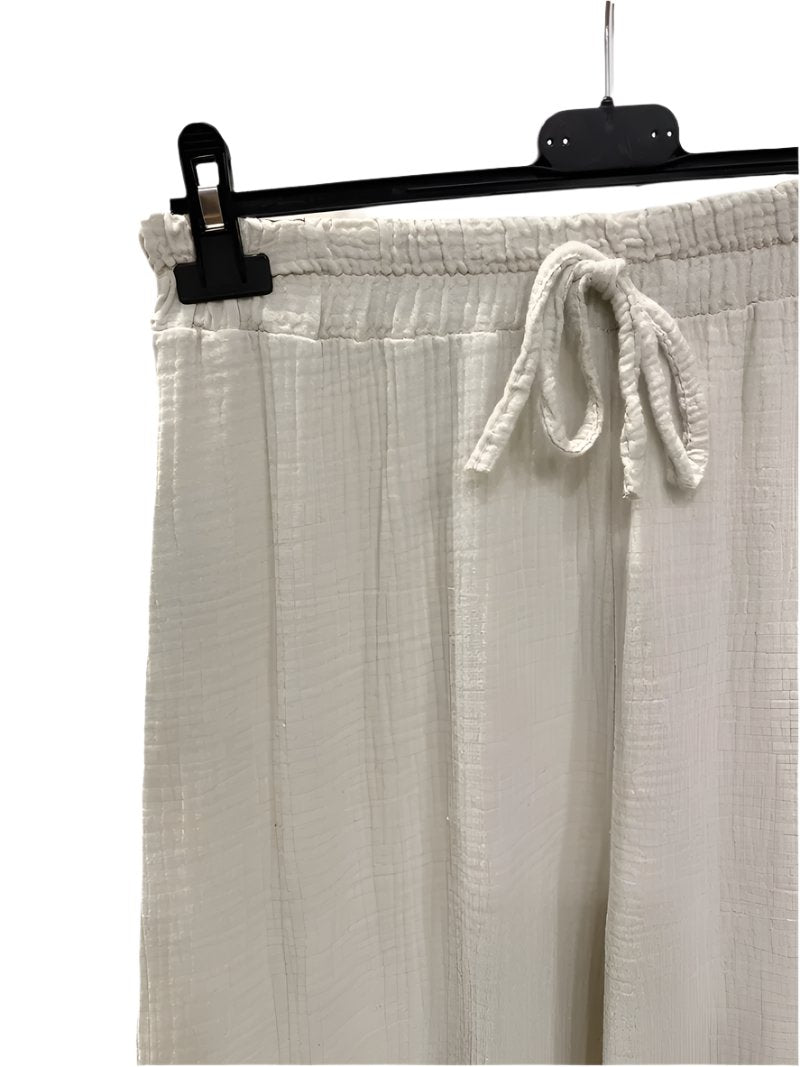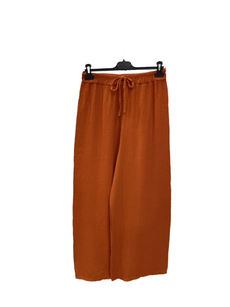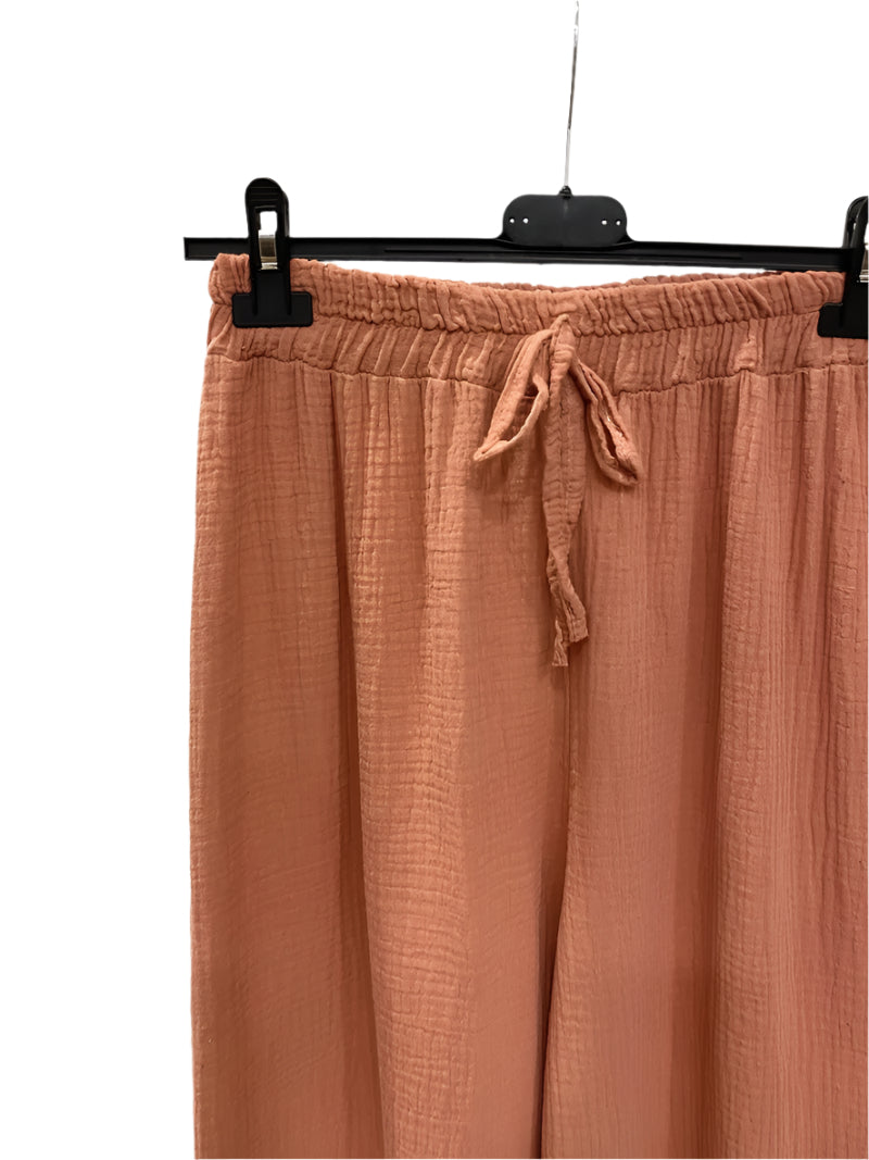 Pantalon italien en gaze de coton uni, taille élastiquée, taille unique