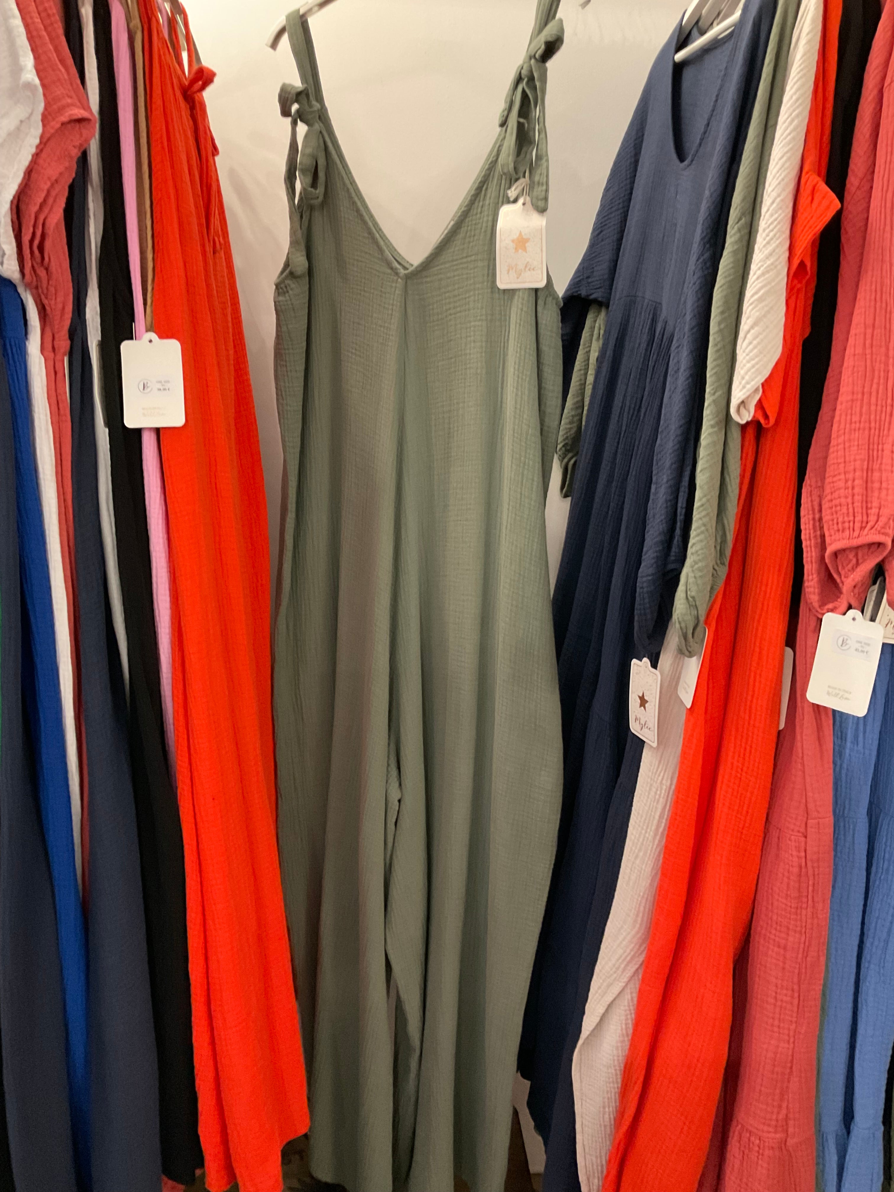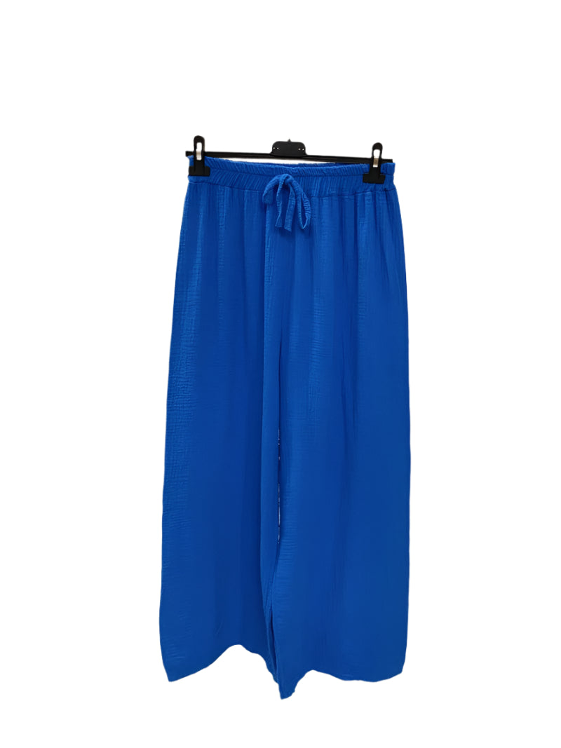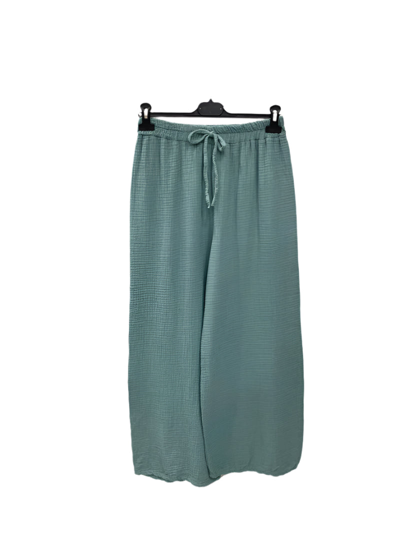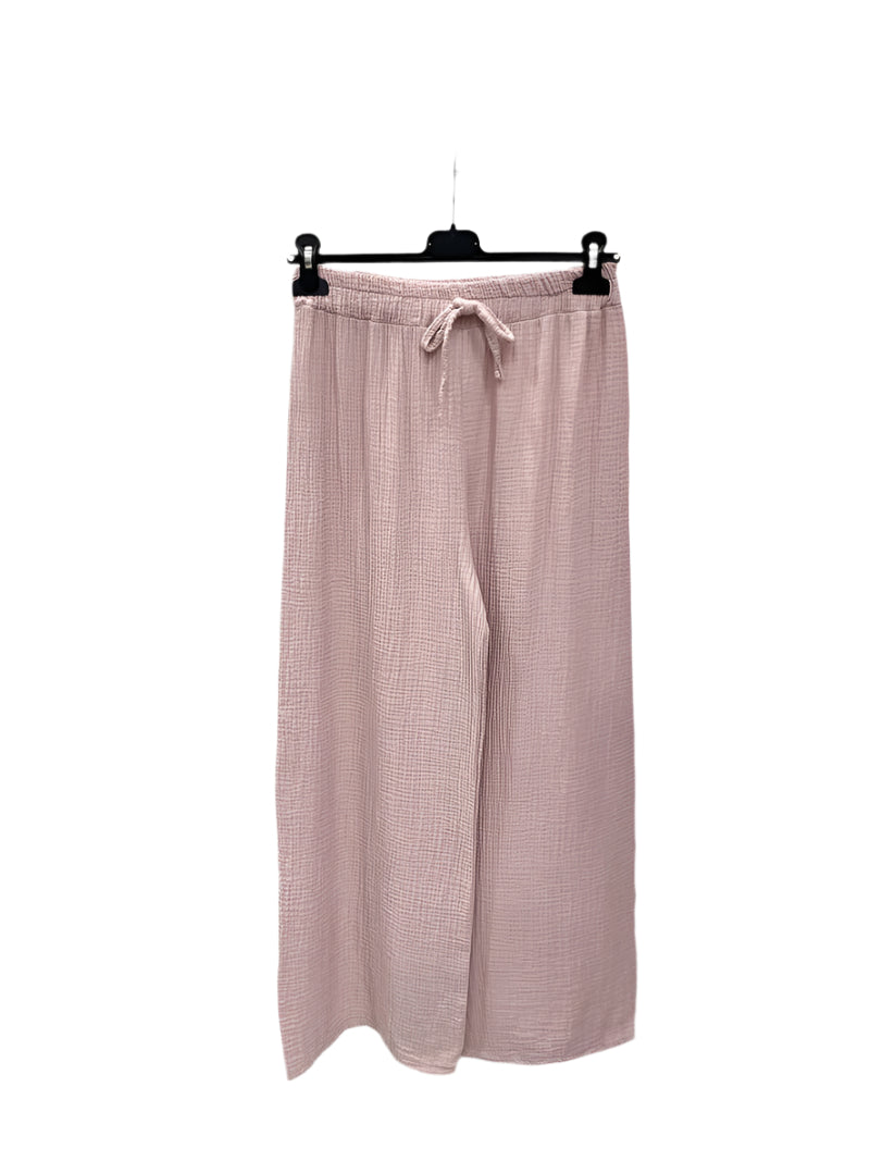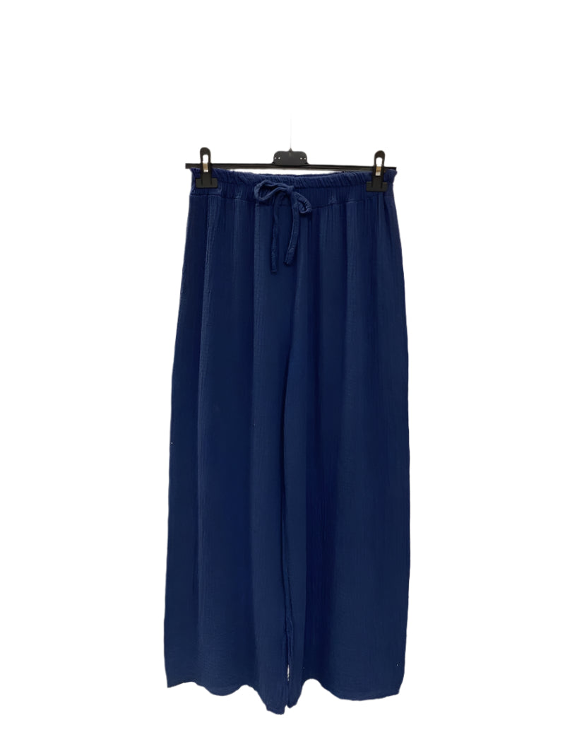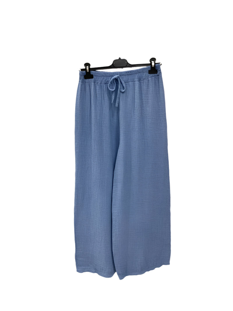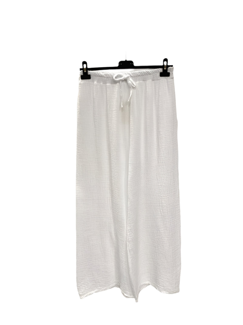Pantalon italien en gaze de coton uni, taille élastiquée, taille unique
