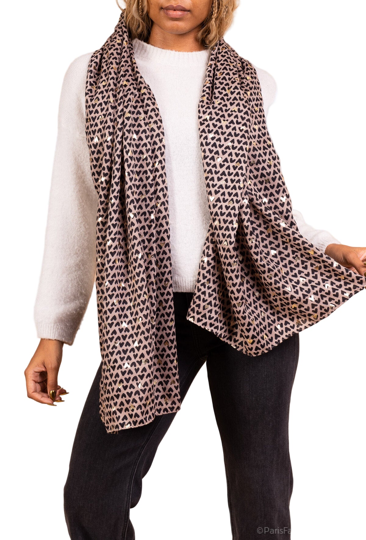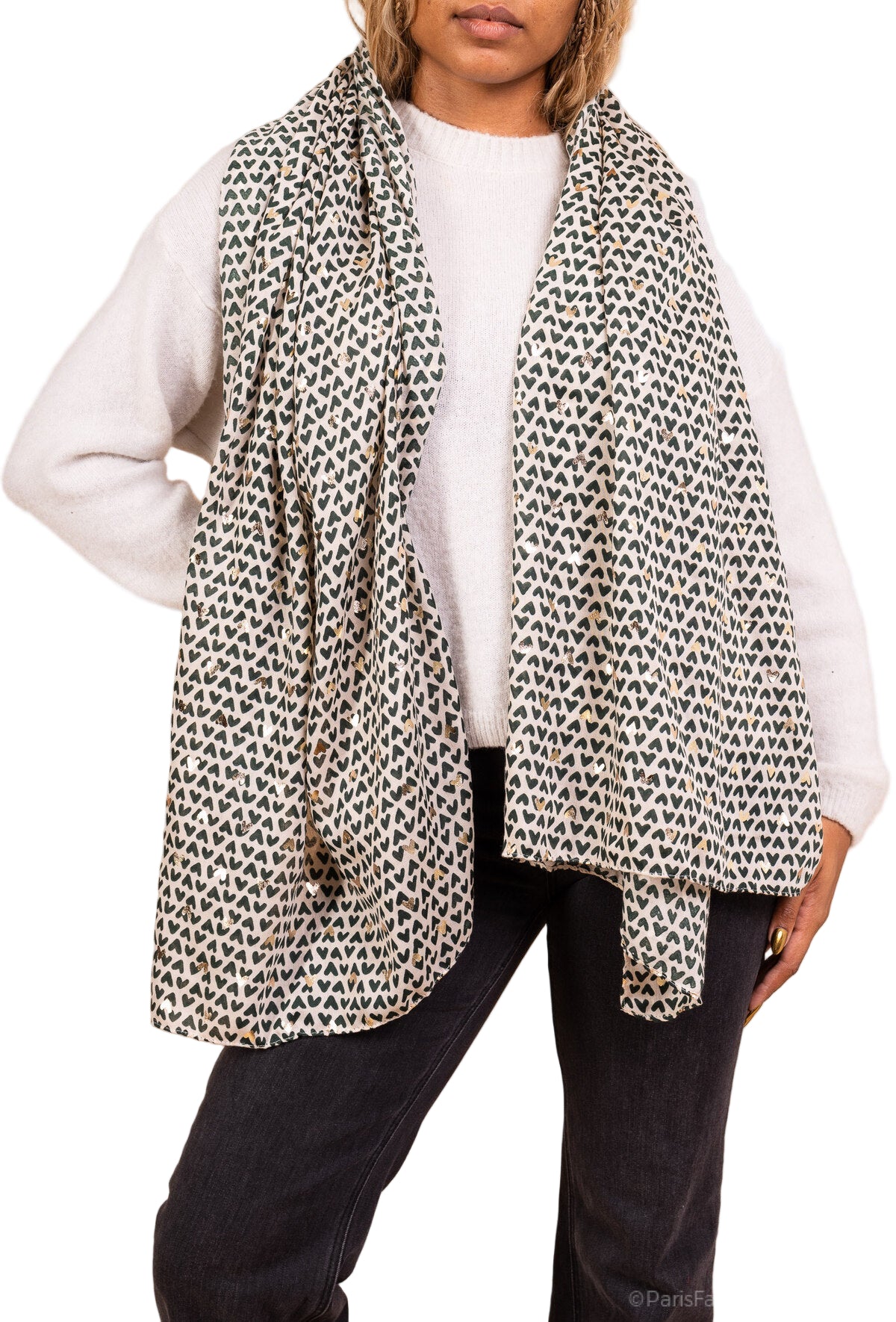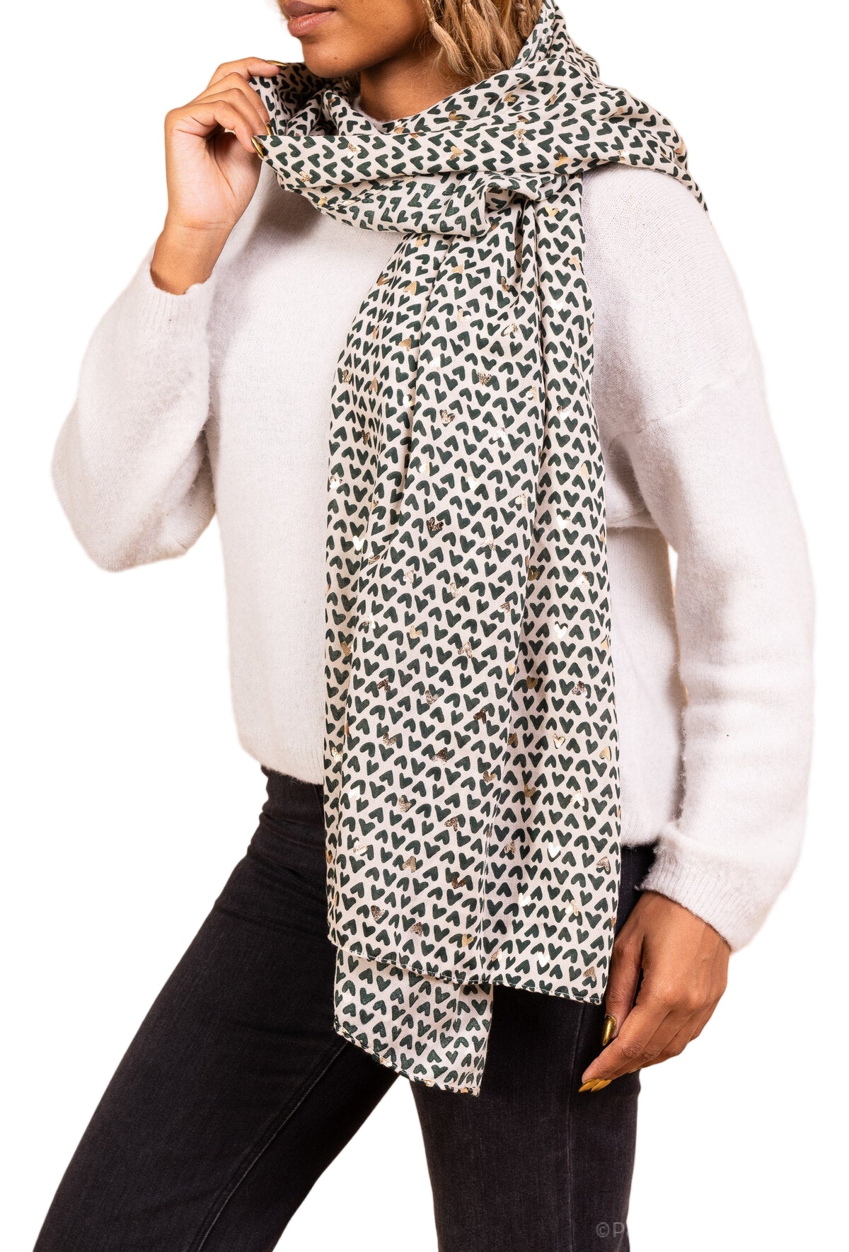 Sublimez votre garde-robe d'automne avec cette douce écharpe en coton et viscose ornée d'un délicat motif cœur doré. Légère et confortable, elle apporte une touche d'élégance tout en vous assurant un confort optimal tout au long de la saison. Idéale pour les superpositions, elle vous assure chic et élégance tout au long de l'automne.