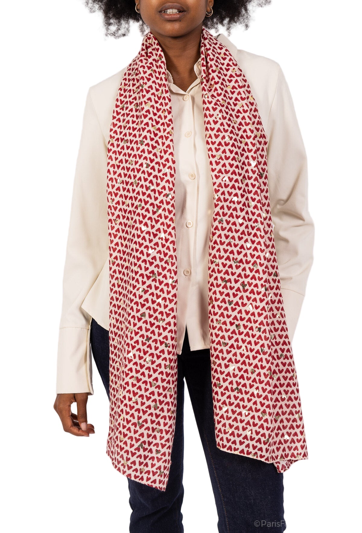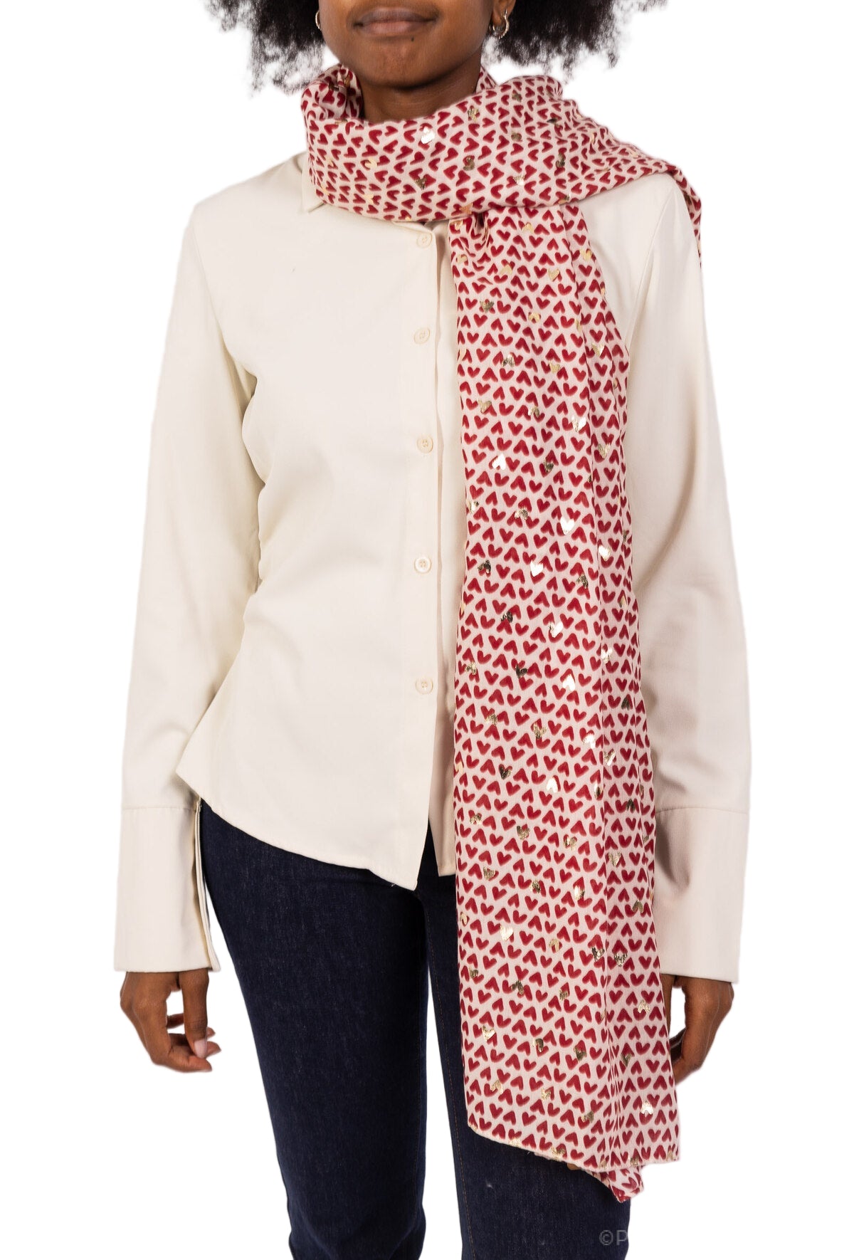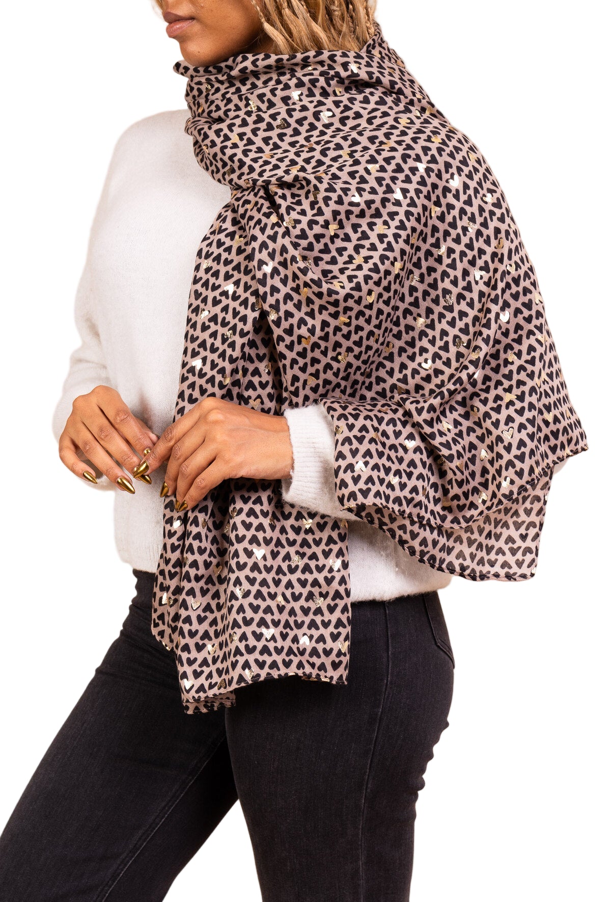 Sublimez votre garde-robe d'automne avec cette douce écharpe en coton et viscose ornée d'un délicat motif cœur doré. Légère et confortable, elle apporte une touche d'élégance tout en vous assurant un confort optimal tout au long de la saison. Idéale pour les superpositions, elle vous assure chic et élégance tout au long de l'automne.