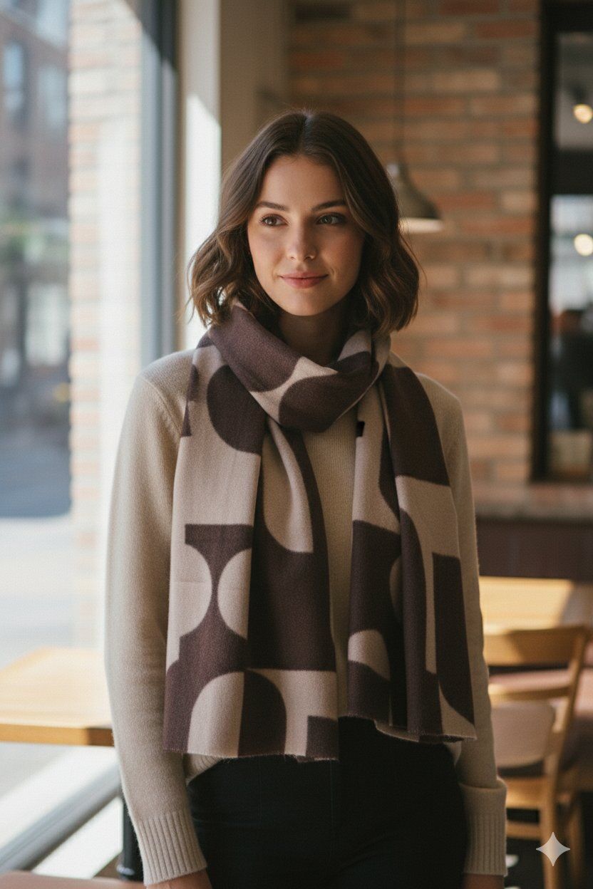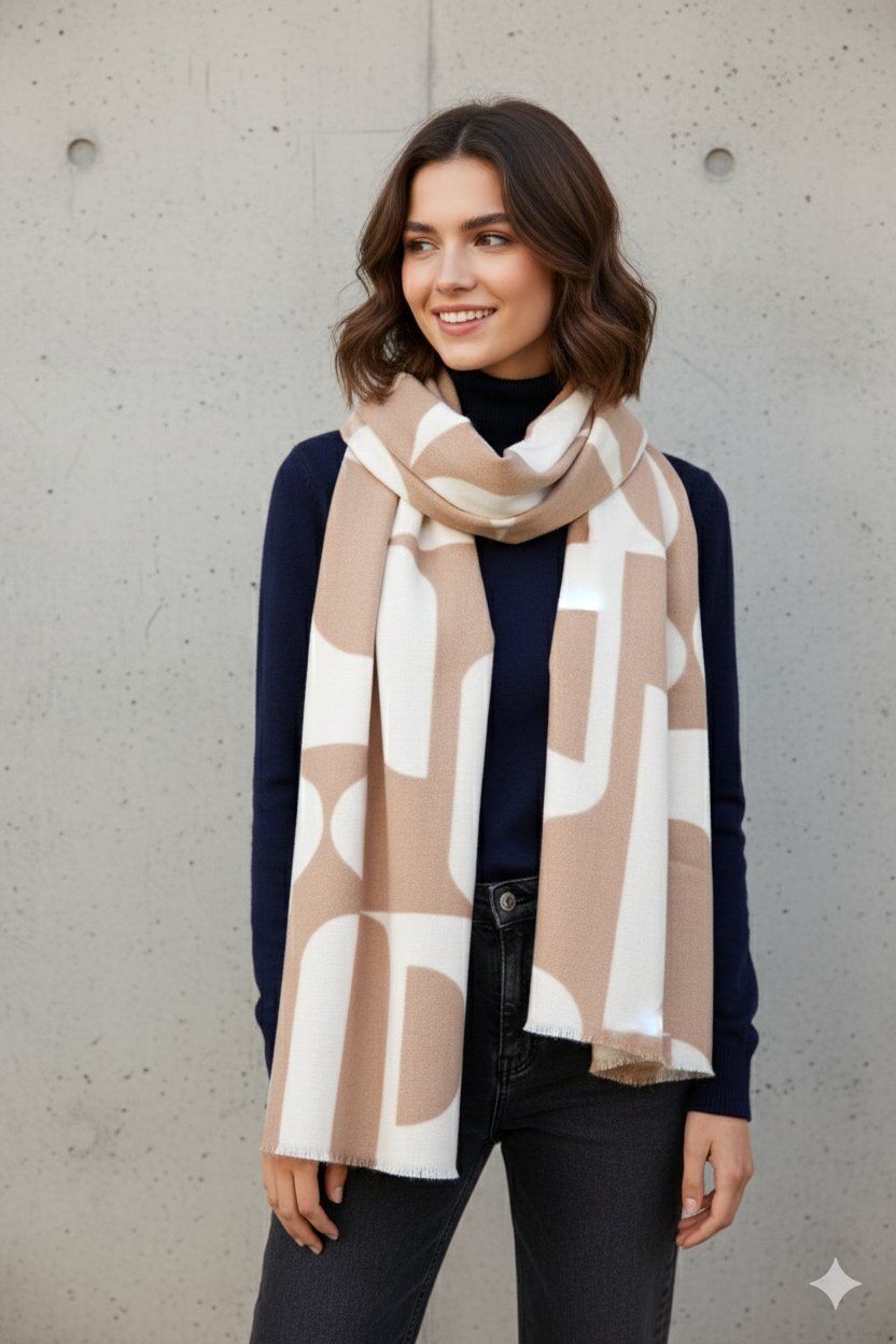 Enveloppez-vous de chaleur et d'élégance avec cette écharpe douce en laine imprimée. Confectionnée dans un mélange de laine douillet, elle offre un confort incomparable tandis que son élégant imprimé géométrique apporte une touche de modernité à votre tenue. Parfaite à superposer par temps frais, cette écharpe rehausse instantanément n'importe quelle tenue, alliant confort et sophistication.