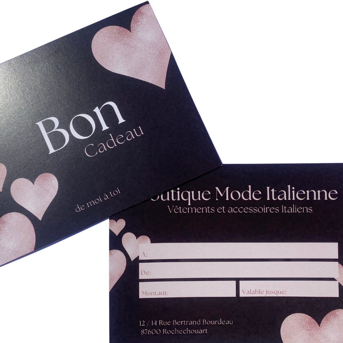 Un bon cadeau à dépenser en ligne ou dans notre boutique Mode Italienne à Rochechouart.