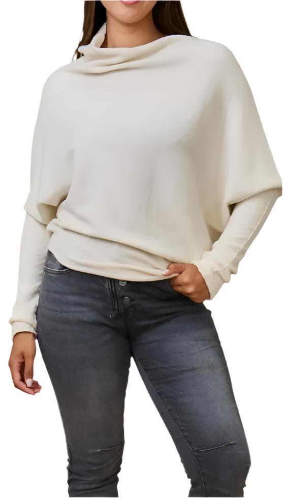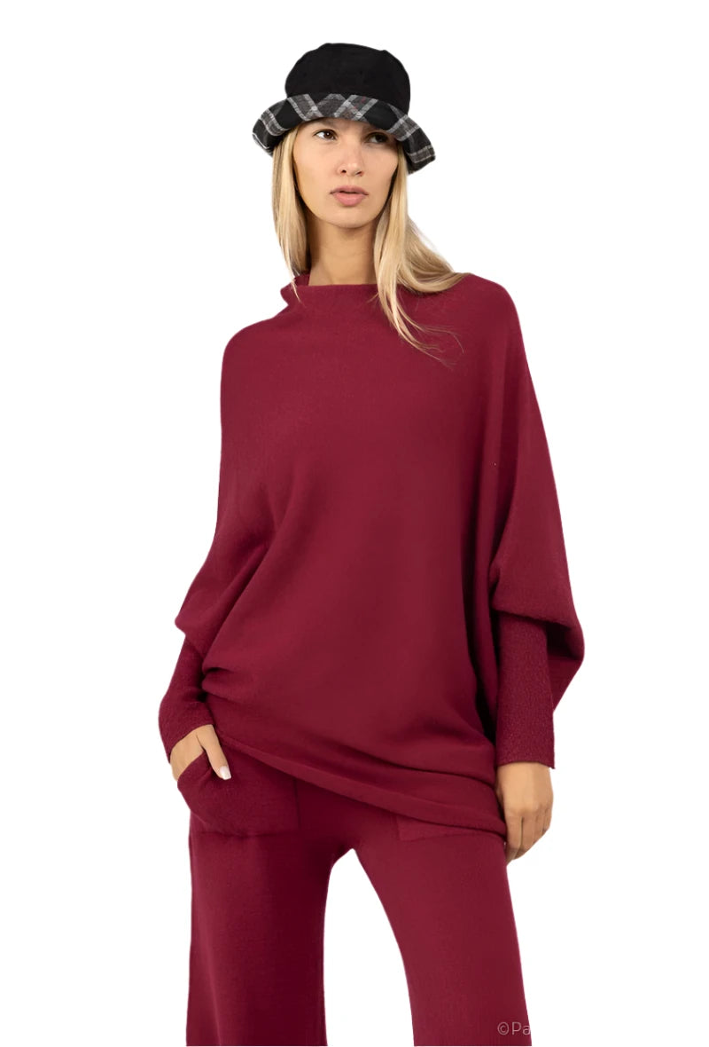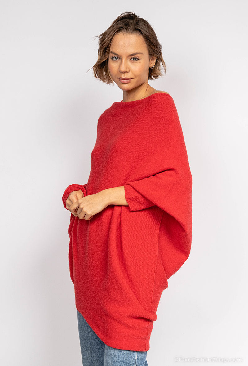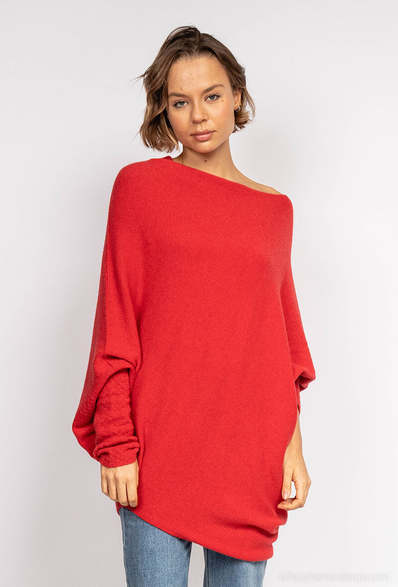 Ce pull italien asymétrique sans couture allie élégance moderne et confort ultime. Confectionné dans un tissu ultra-doux façon cachemire, il offre légèreté et chaleur dans une coupe ample flatteuse. Son encolure bateau légèrement élargie peut être portée droite ou drapée sur une épaule, tandis que ses manches chauve-souris se rétrécissent gracieusement grâce à des détails raffinés en maille texturée. Idéal pour une détente chic ou des sorties élégantes, il s'associe sans effort à un legging, un jean slim ou un pantalon fluide. Polyvalent et sophistiqué, ce pull taille unique est un incontournable de votre garde-robe. Taille unique 38 à 46 (UK 10 - 18)