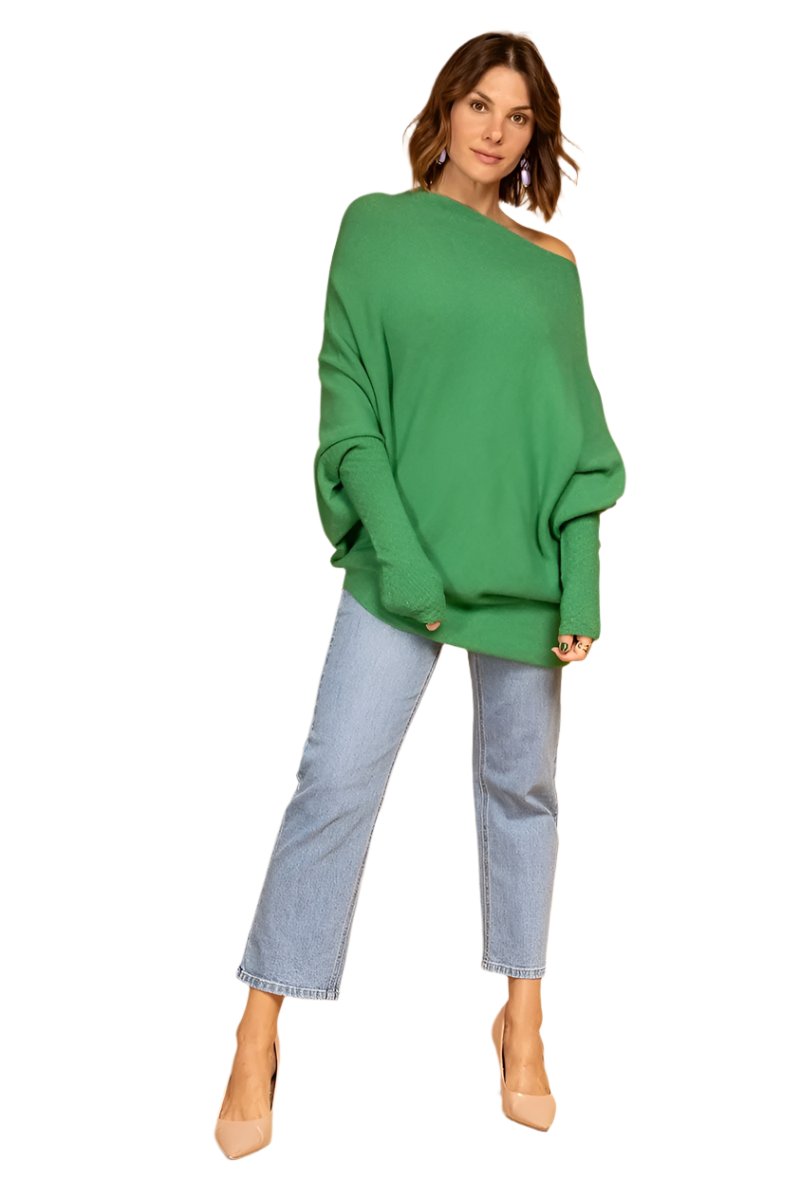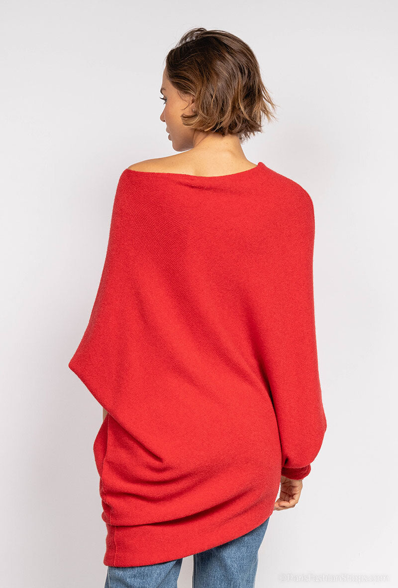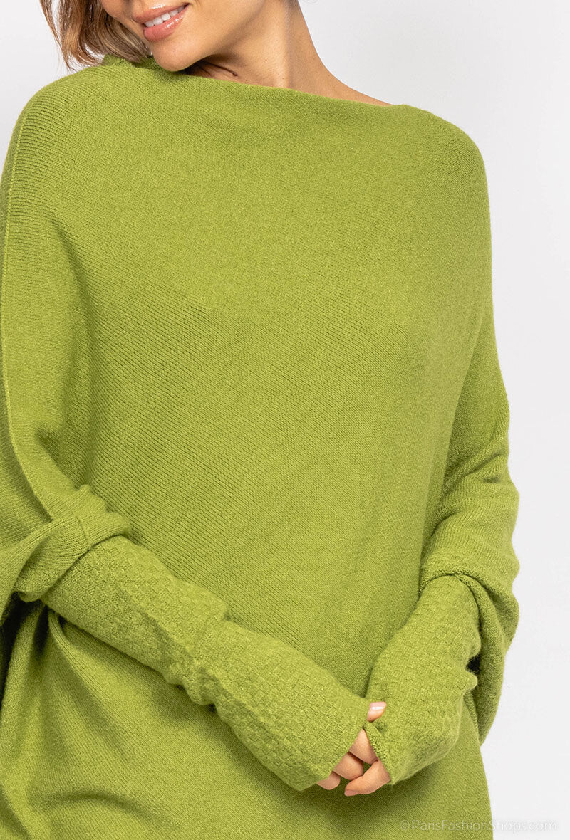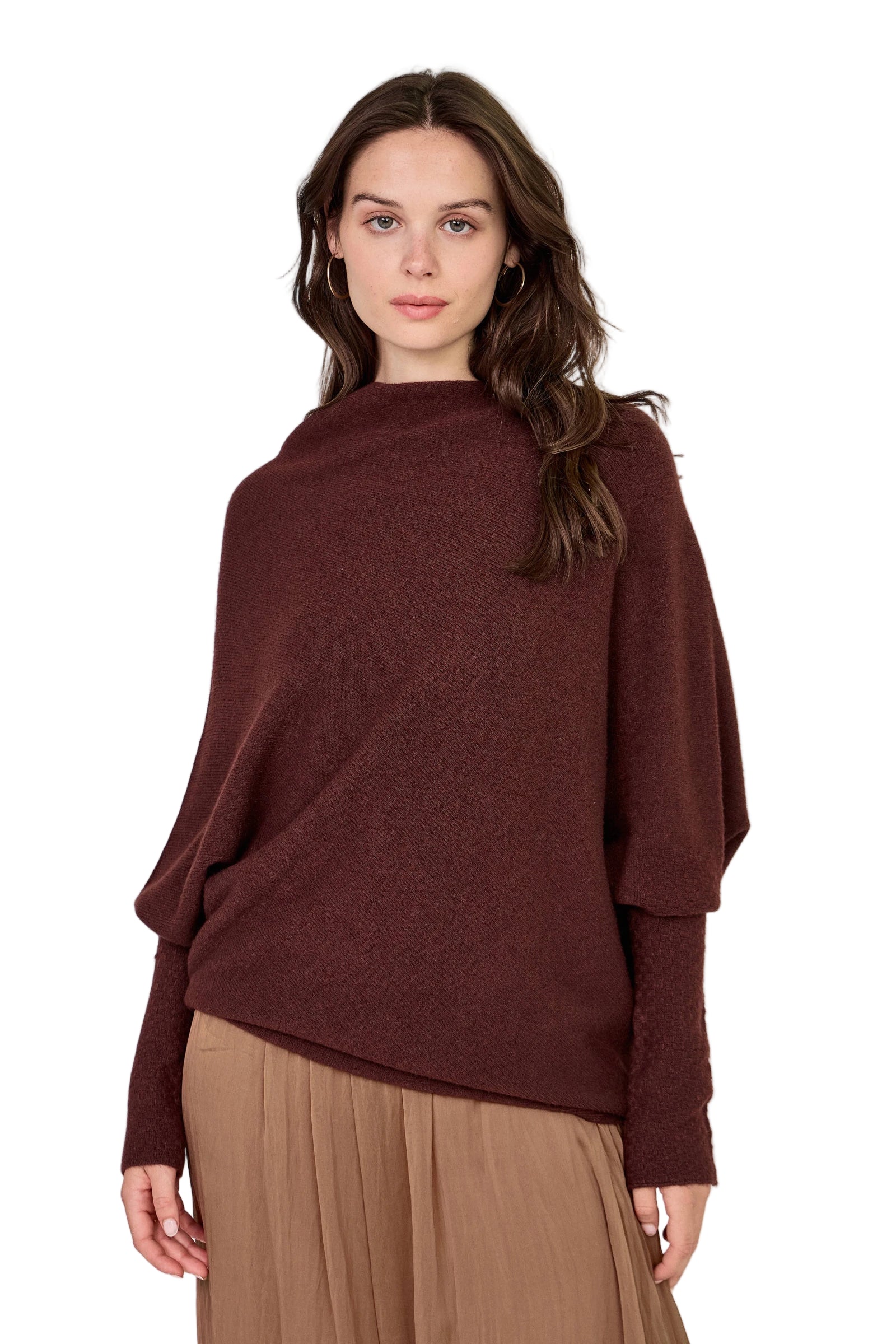 Ce pull italien asymétrique sans couture allie élégance moderne et confort ultime. Confectionné dans un tissu ultra-doux façon cachemire, il offre légèreté et chaleur dans une coupe ample flatteuse. Son encolure bateau légèrement élargie peut être portée droite ou drapée sur une épaule, tandis que ses manches chauve-souris se rétrécissent gracieusement grâce à des détails raffinés en maille texturée. Idéal pour une détente chic ou des sorties élégantes, il s'associe sans effort à un legging, un jean slim ou un pantalon fluide. Polyvalent et sophistiqué, ce pull taille unique est un incontournable de votre garde-robe. Taille unique 38 à 46 (UK 10 - 18)