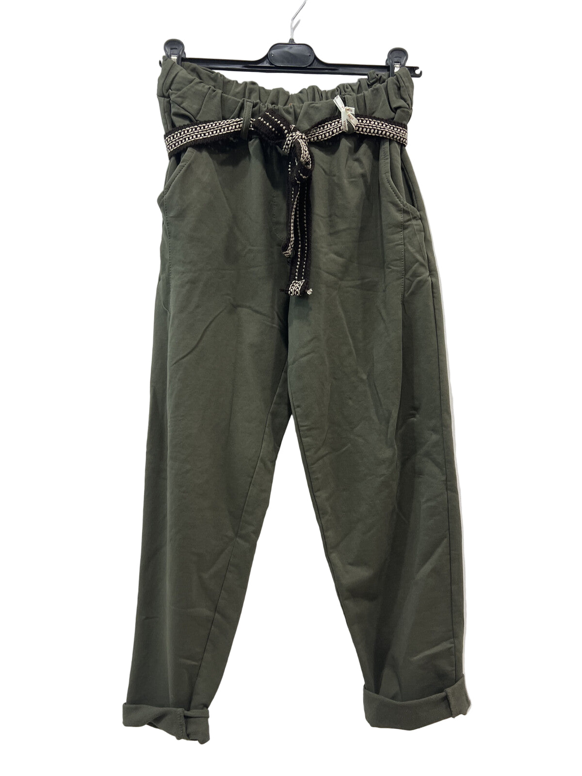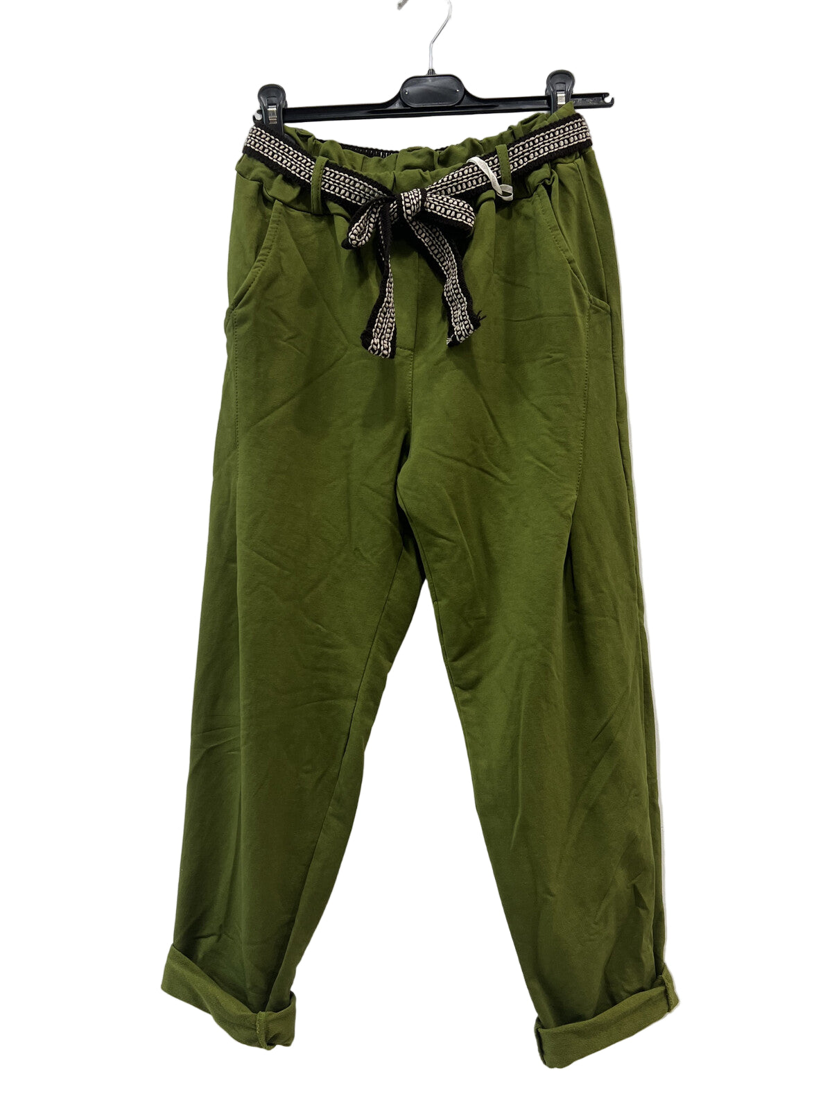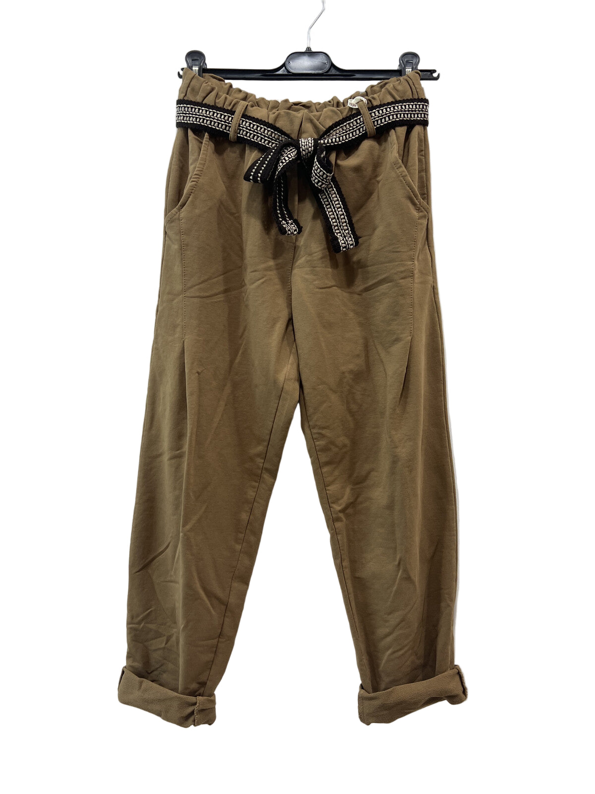 • Pantalon de jogging en coton avec ceinture, taille élastiquée, poches avant et arrière